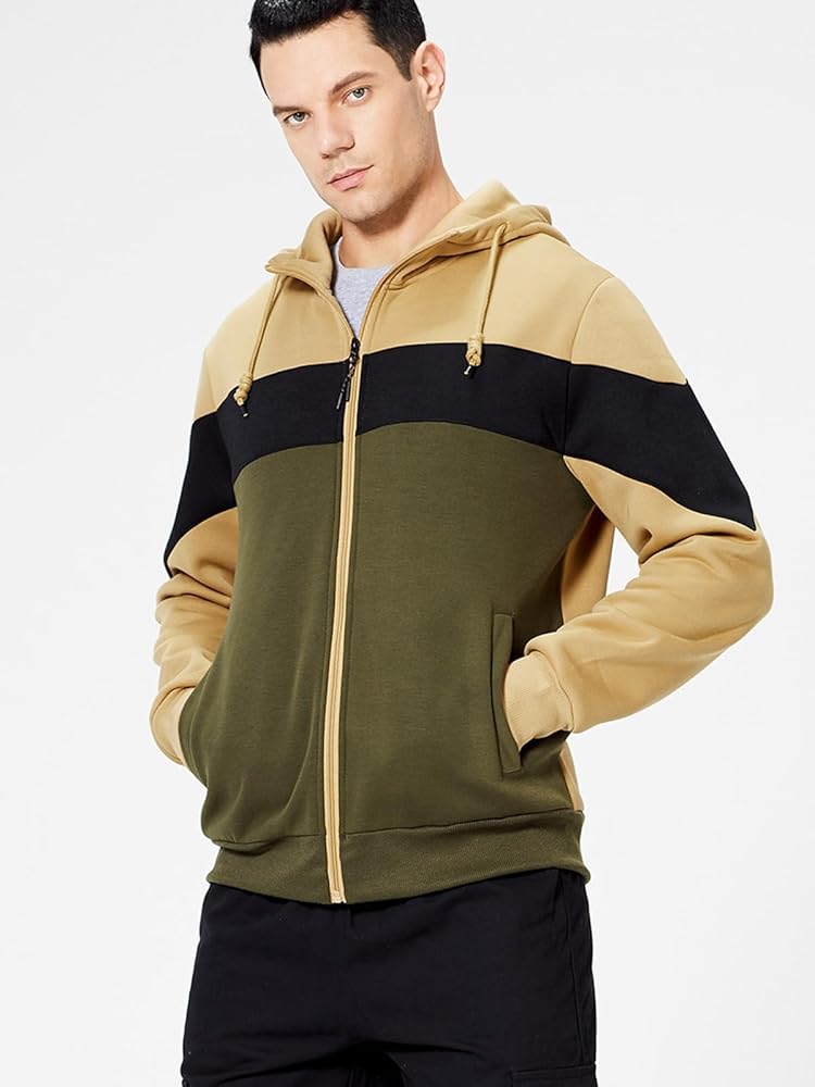 أكمام طويلة، سترات بغطاء للرأس بنمط الركض مع سحاب إغلاق كامل، وجيبين مائلين، خفيف الوزن ومريح، جميع التصميمات تجعل هذه السترة ذات القلنسوة أنيقة وسهلة، وتظهر سحر الرجل الأنيق