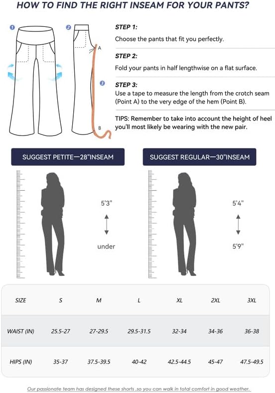 • أطوال الدرزة الداخلية: درزة داخلية صغيرة - 28 بوصة تناسب النساء 5'3 بوصة أو أقل/ عادية - 30 بوصة تناسب النساء 5'4 بوصة - 5'9 بوصة / طويل - 32 بوصة تناسب النساء 5'10 بوصة أو أعلى.