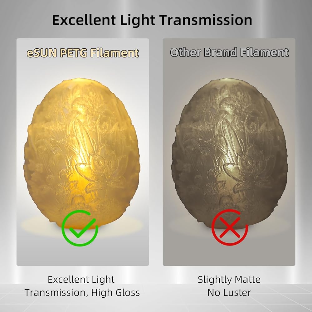 • 【خيوط PETG】لا تتمتع PETG فقط بمزايا المتانة العالية والخصائص الميكانيكية الجيدة (مثل ABS)، ولكنها تتميز أيضًا بخصائص سهولة الطباعة والحد الأدنى من الاعوجاج (مثل PLA). مناسبة لطباعة الأجزاء الوظيفية التي تحتاج إلى صلابة أعلى.