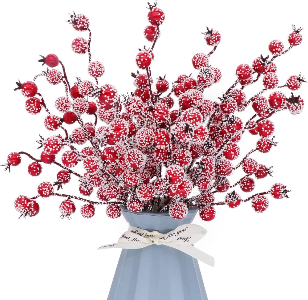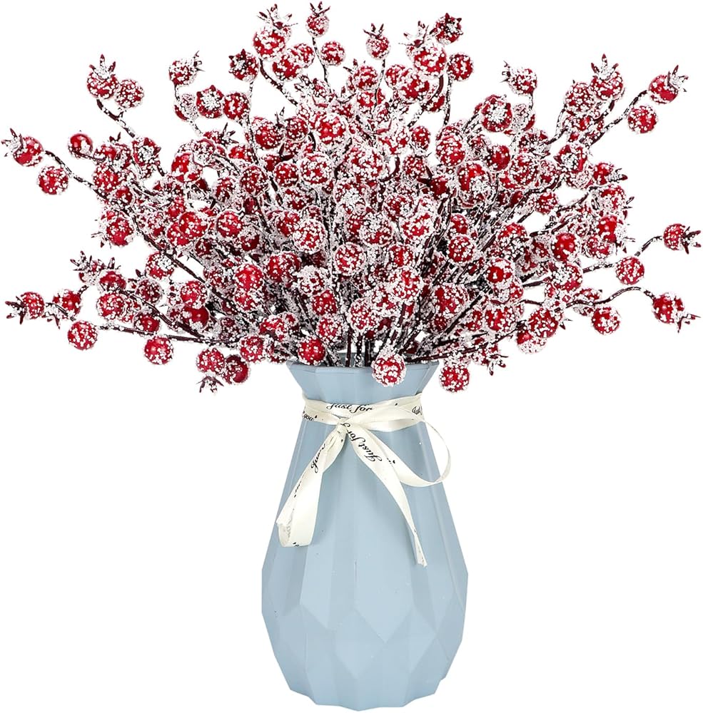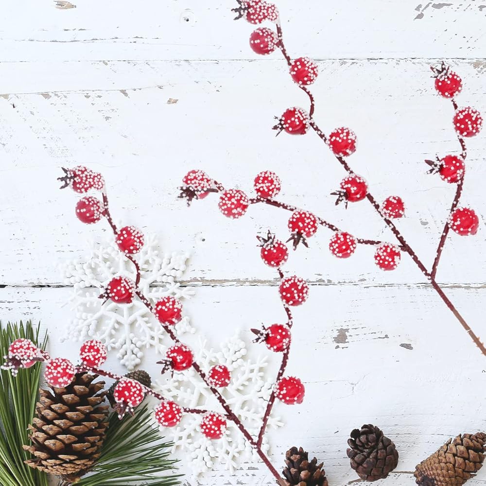 12 pack large artificial berry stems, with festive red color and unique snow design, are sufficient to meet your different craft needs and great decoration for your home and party.