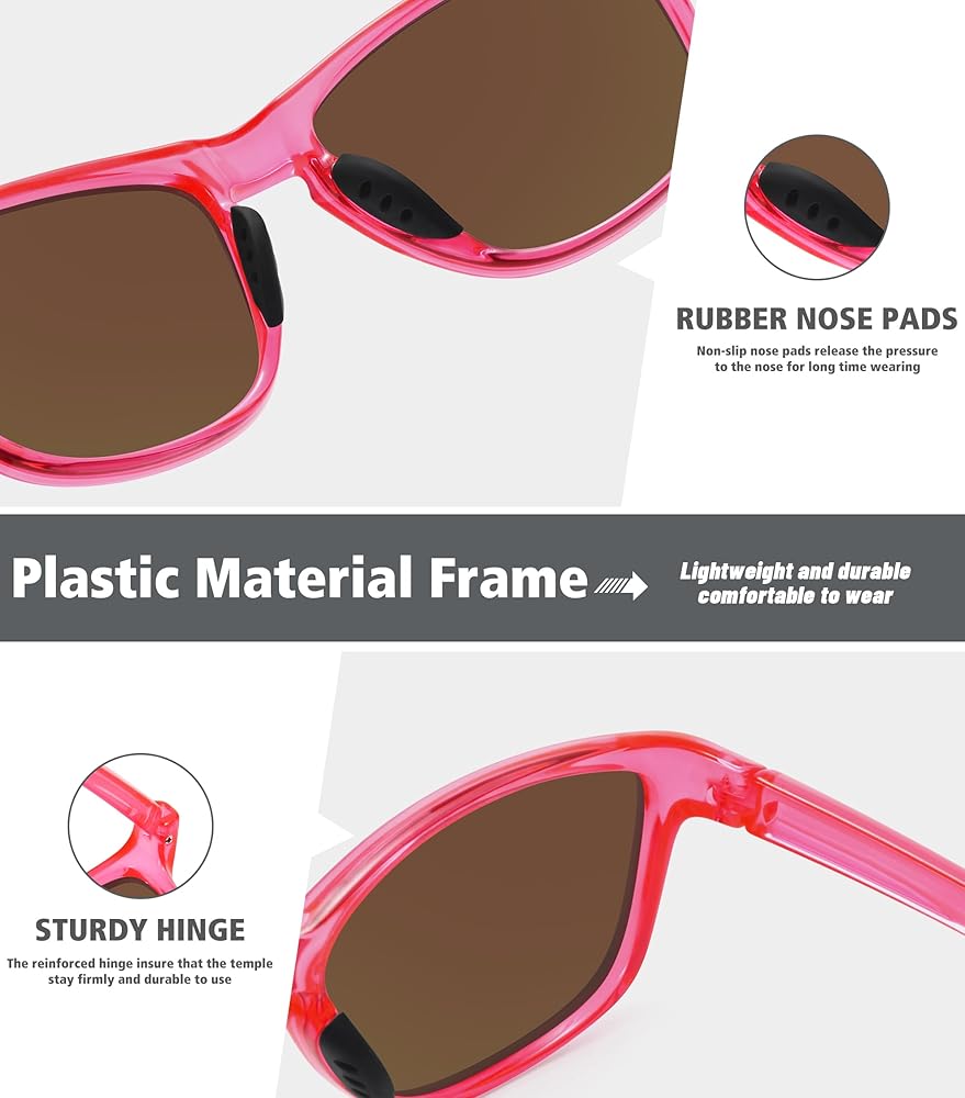 【تصميم مريح للارتداء】- يمكن ارتداء وسادات الأنف المريحة المكونة من قطعة واحدة لفترة طويلة دون ترك علامات. الأذرع والإطار مصنوعان من مادة بلاستيكية عالية الجودة، مريحة في الارتداء، رياضية وأنيقة.