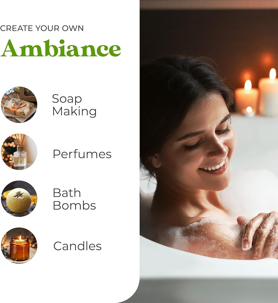 مثالي للعلاج بالروائح والمنتجات المنزلية - أضف بضع قطرات إلى موزع الزيوت العطرية المفضل لديك، أو أضف بضع قطرات إلى الشموع المنزلية أو الصابون أو المستحضرات أو الشامبو للحصول على منتجات اللبان محلية الصنع ذات الرائحة الرائعة.