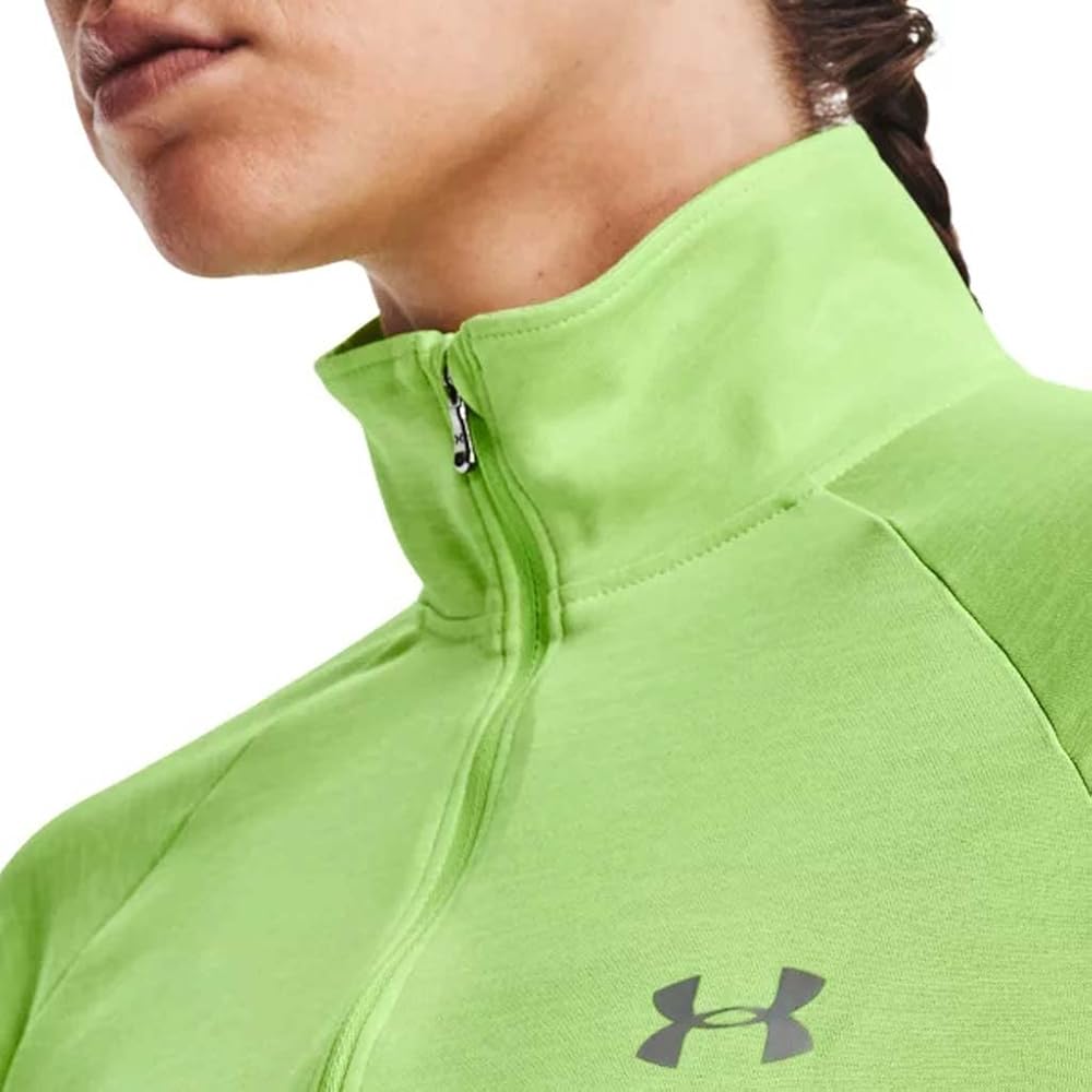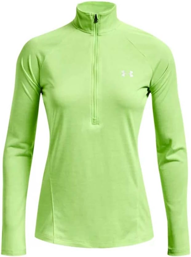 بلوفر نسائي من Under Armour Tech Twist ½ سحاب وأكمام طويلة، ليموني ملتوي (752)/فضي معدني، مقاس متوسط