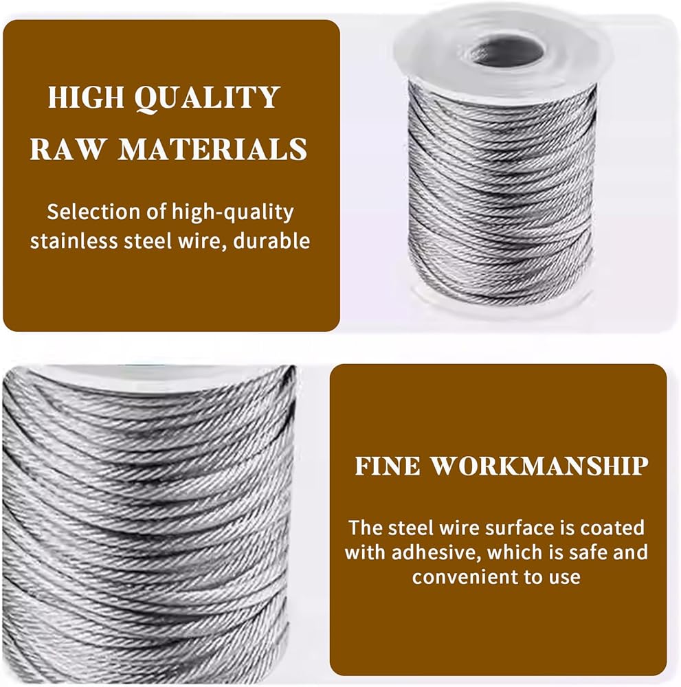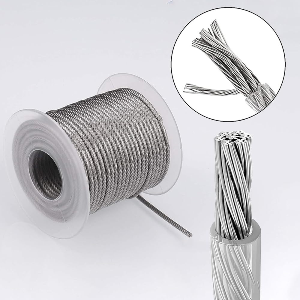 【Easy To Use】- Our 5/64" wire rope is easy to work with. It requires a strong cable cutter for precise cutting. For optimal fastening, we recommend using a hydraulic crimping tool with the M3 aluminum crimping loop. Additionally, the stainless steel thimble included in the kit prevents wire rope wear, extending the overall service life of your project.