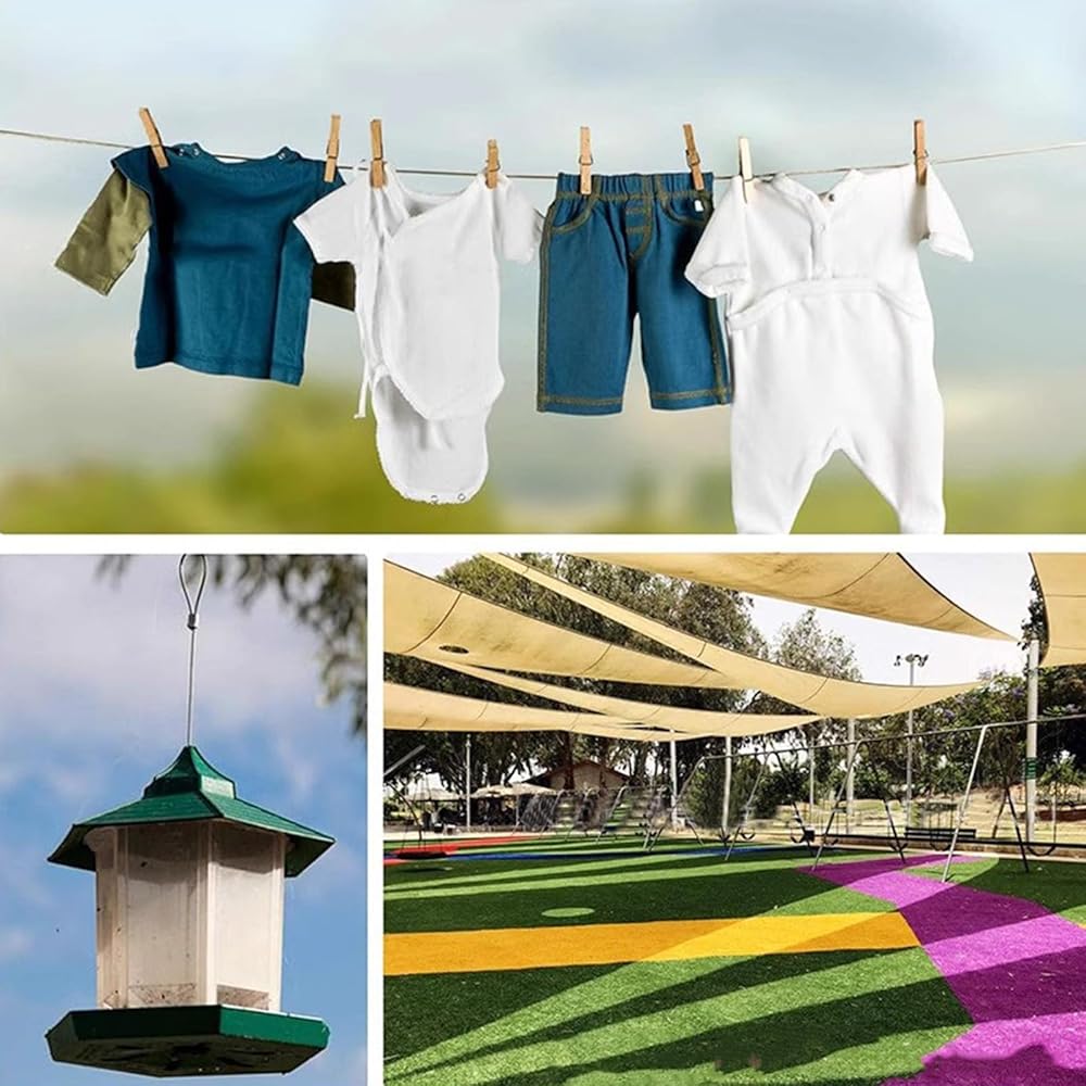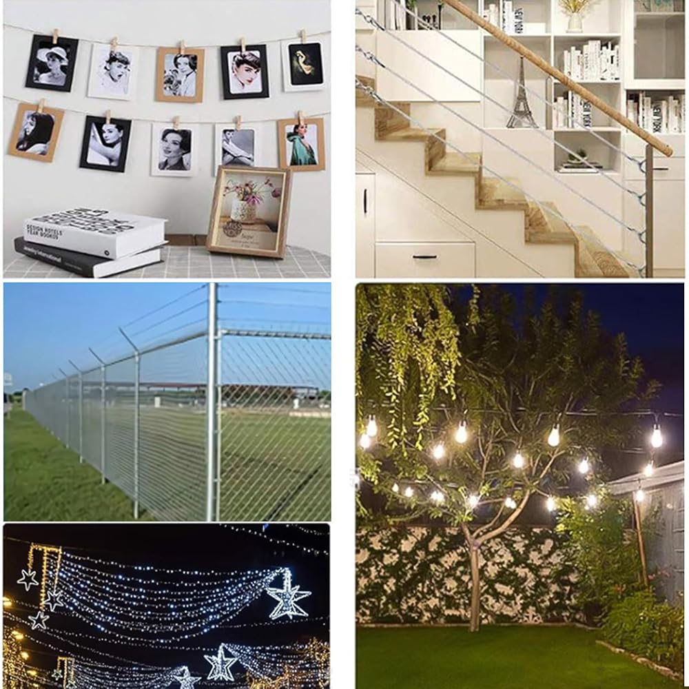【Multipurpose 5/64" Wire Rope Kit】- This versatile stainless steel coated wire cable kit is designed to handle a wide range of heavy-duty tasks, including outdoor cable decking railing, DIY balustrade wire, indoor stair railing, garden wire, fence gate cable, outdoor lights strings hanging, sun shade sail cable rope, curtain wire hanging, clothesline wires, outdoor hanging wire, trellis wire, wisteria wire, grapevine wire, and gate wire.