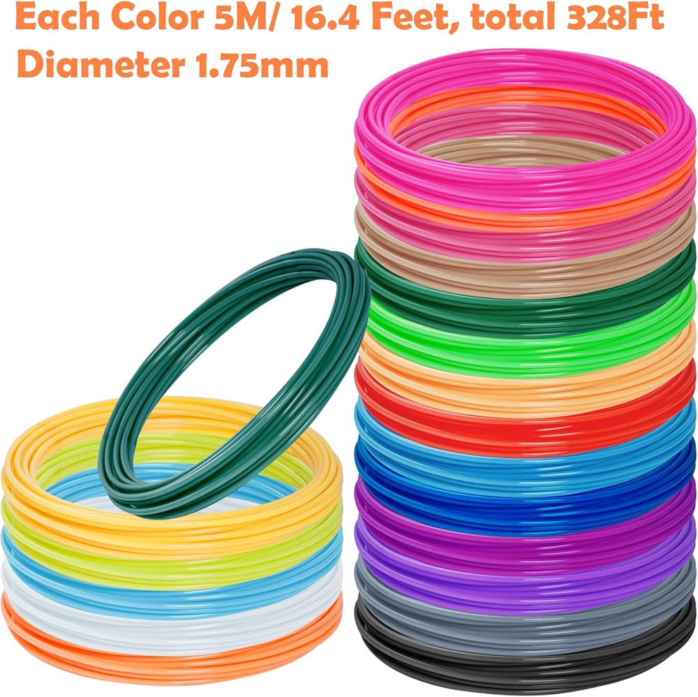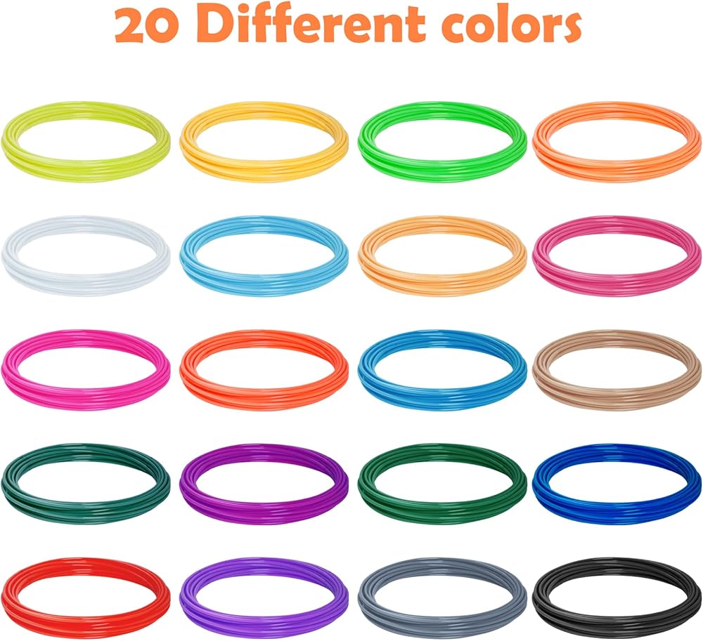 20 Colors 3D Pen Filament Refills PLA Filament 1.75mm, Total 328 ft, Each Color 16.4 Feet, 3D Pen Filament Smooth Printing Refills