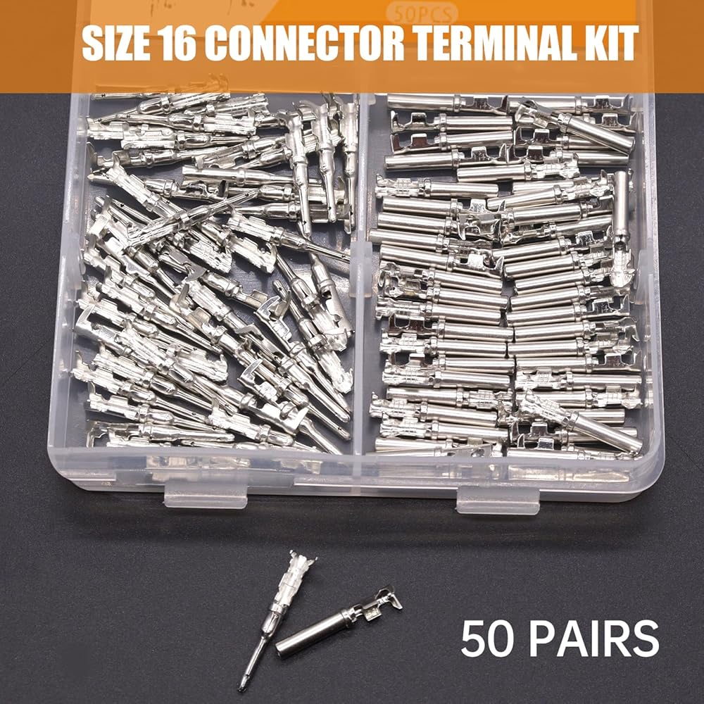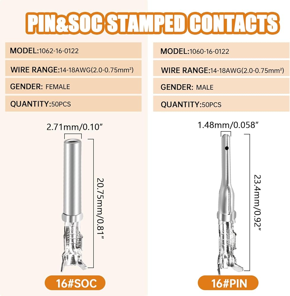 • طقم طرف موصل مقاس 16، 50 زوجًا إجمالاً، بما في ذلك 50 قطعة من وصلات الدبوس (1060-16-0122) و50 قطعة من وصلات المقبس (1062-16-0122). تعد أطراف الموصل هذه بدائل مثالية للموصلات البديلة للقابس. ضعها في مكان شفاف علبة بلاستيكية سهلة النقل والتمييز.