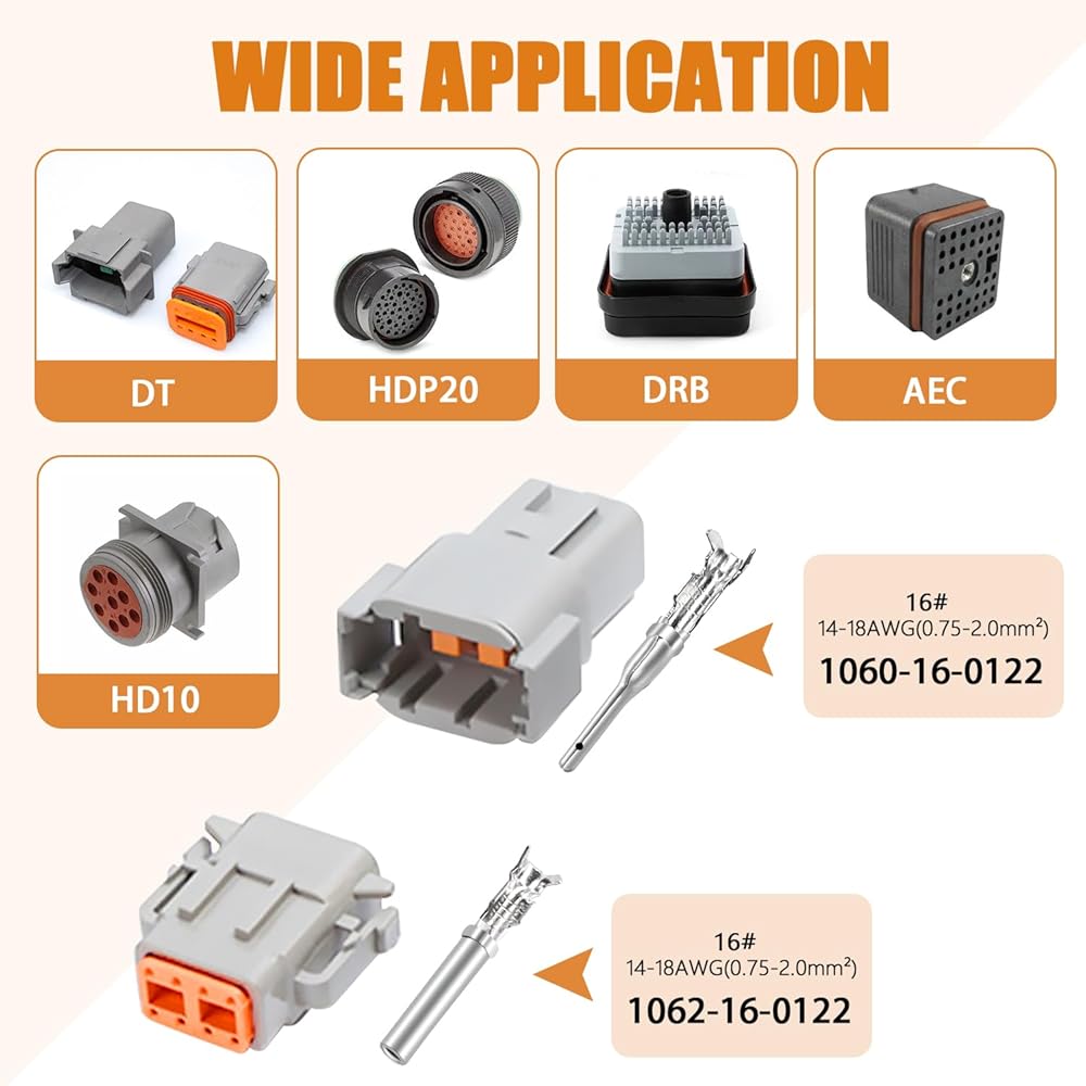 • 【مواد عالية الجودة】جميع الدبابيس الطرفية لوصلات DT مصنوعة من النحاس المطلي بالقصدير عالي الجودة، مما يجعلها تتمتع بمقاومة رائعة للتآكل والأكسدة. تتميز هذه المادة أيضًا بتوصيل كهربائي قوي للغاية، والتي يمكن أن تزيد من التيار وتمنع الأسلاك من التسخين. .