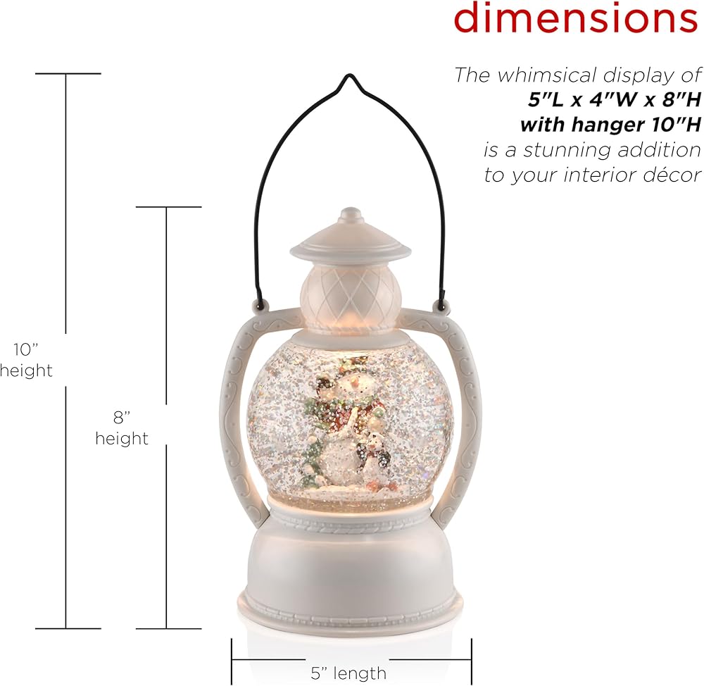 HIDDEN ELECTRIC MOTOR: Features a motor at its base that swirls the glitter for a constant snowfall