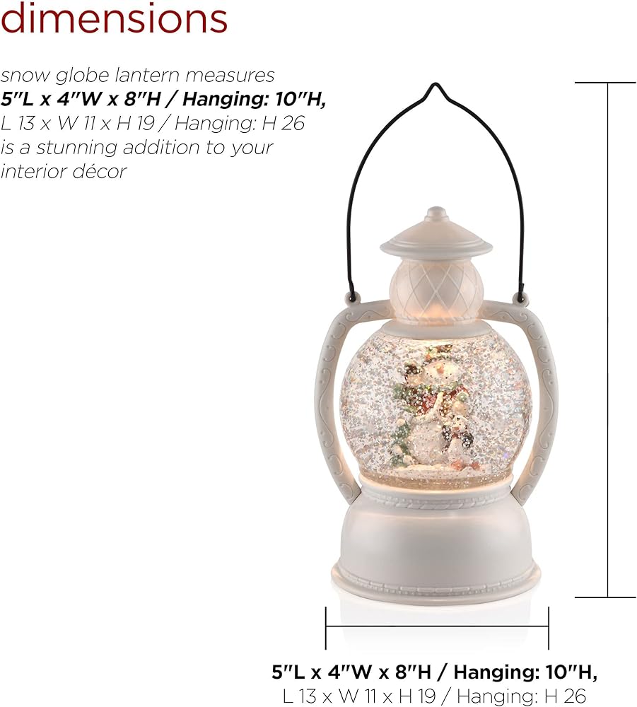 WIRELESS: Snow globe lantern uses 3 AA batteries (not included), allowing you to place it wherever you desire without worrying about distance to an outlet