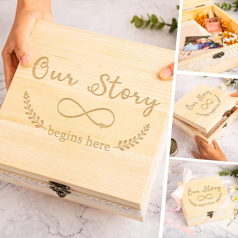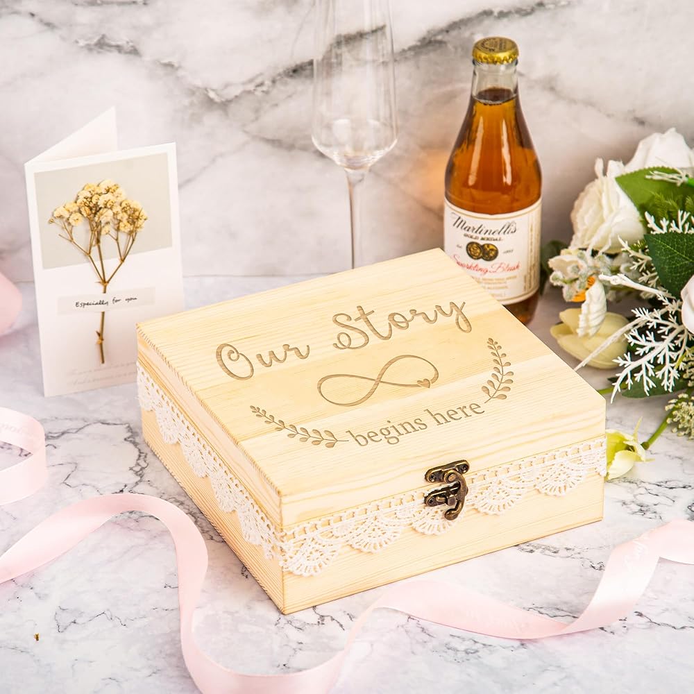 【Engraved Design】Our wedding memory box, engraved with a touching inscription, decorated with lace edge is certain to store any kind of souvenirs and bring back cherished memories every time.