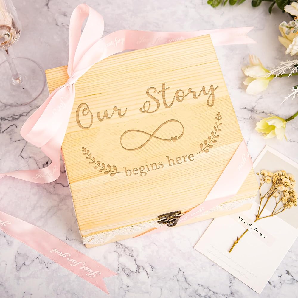 Keepsake Box With Lid Decorative Memory Box Wooden Art for Couples Mr Mrs Weddings Anniversary Bridal Shower Birthday Gifts