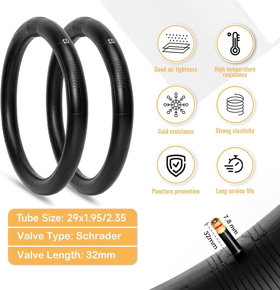 • حجم الأنبوب الداخلي للدراجة: 26 × 1.95/2.35 بوصة، صمام شريدر AV 32 مم. مصنوعة من مطاط البوتيل السميك والقوي والمتين للغاية، هذه الأنابيب الداخلية هي مادة تخفيف مثالية لتقليل الاهتزازات وتبديد التأثيرات الناجمة عن المطبات والأسطح الخشنة على الطريق أو الرصيف.