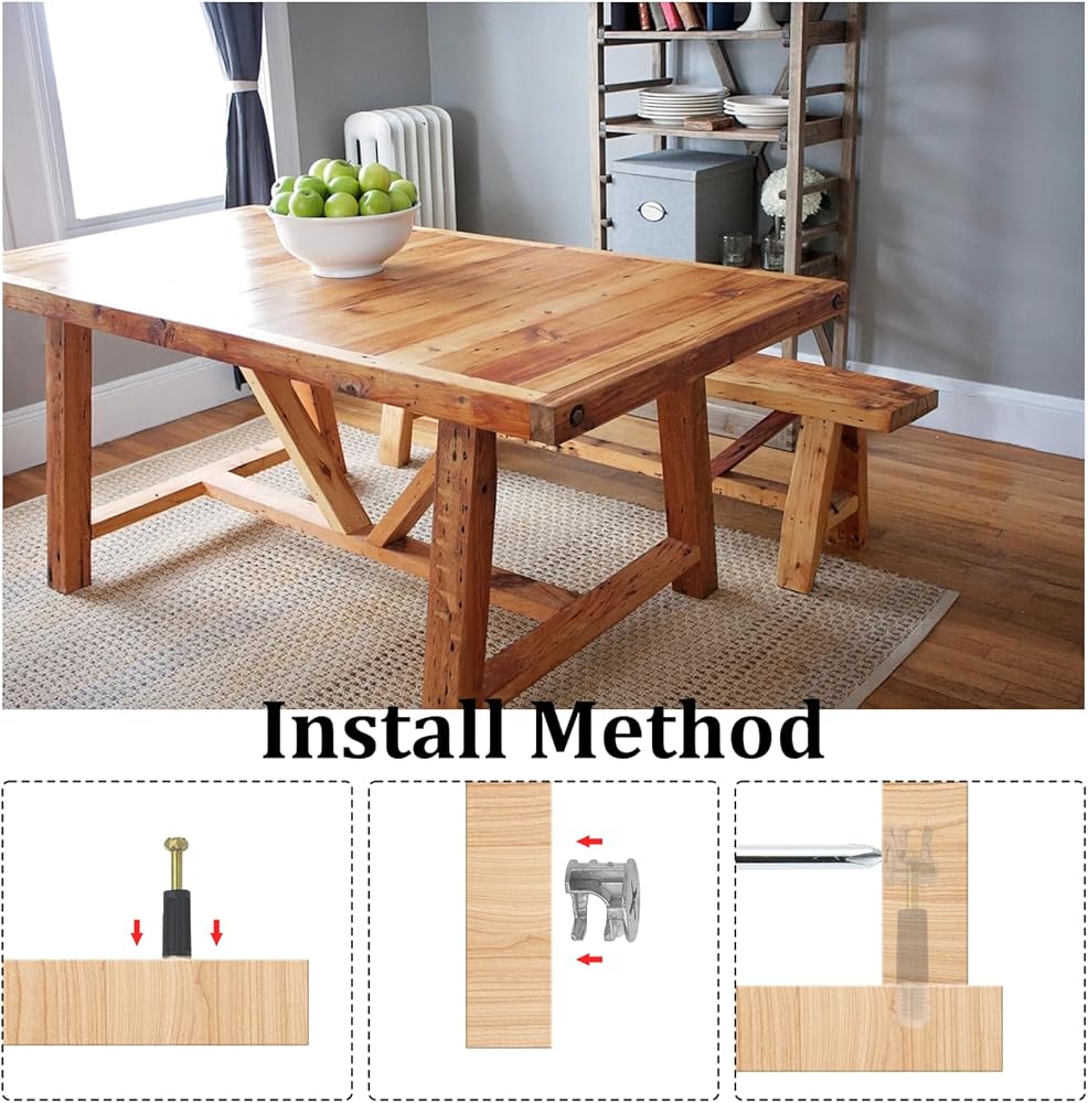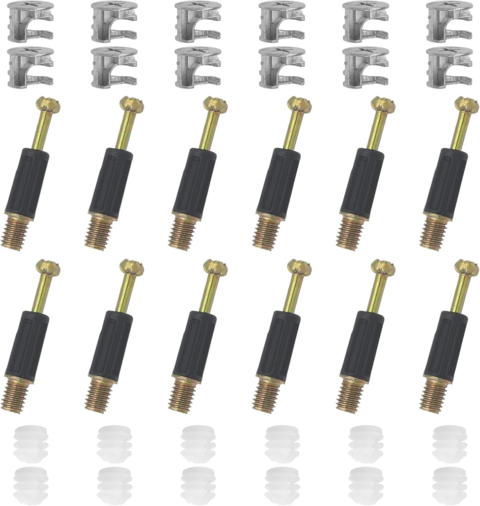 • What You Will Get - 12 sets of 3-in-1 cam lock screws, each set contains 1 x machine threaded connection rod, 1 x zinc alloy eccentric wheel, 1 x expansion embedded parts.