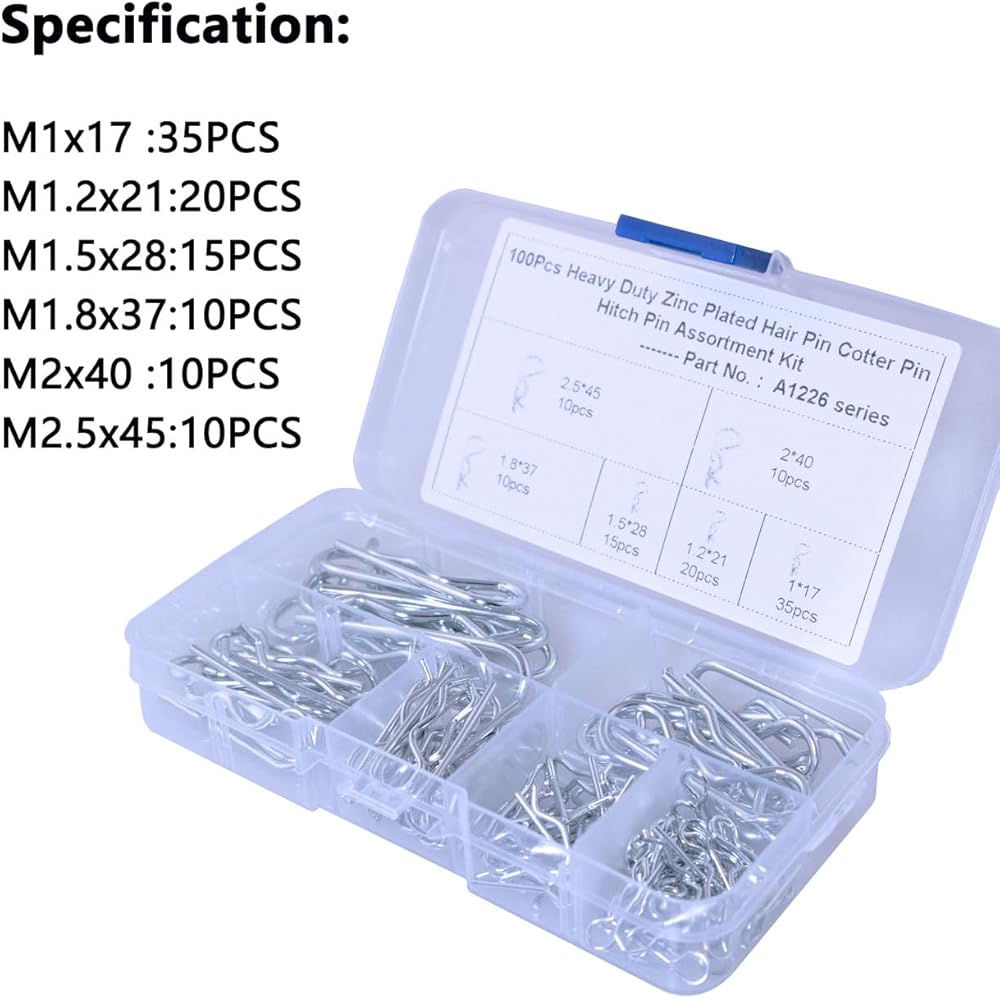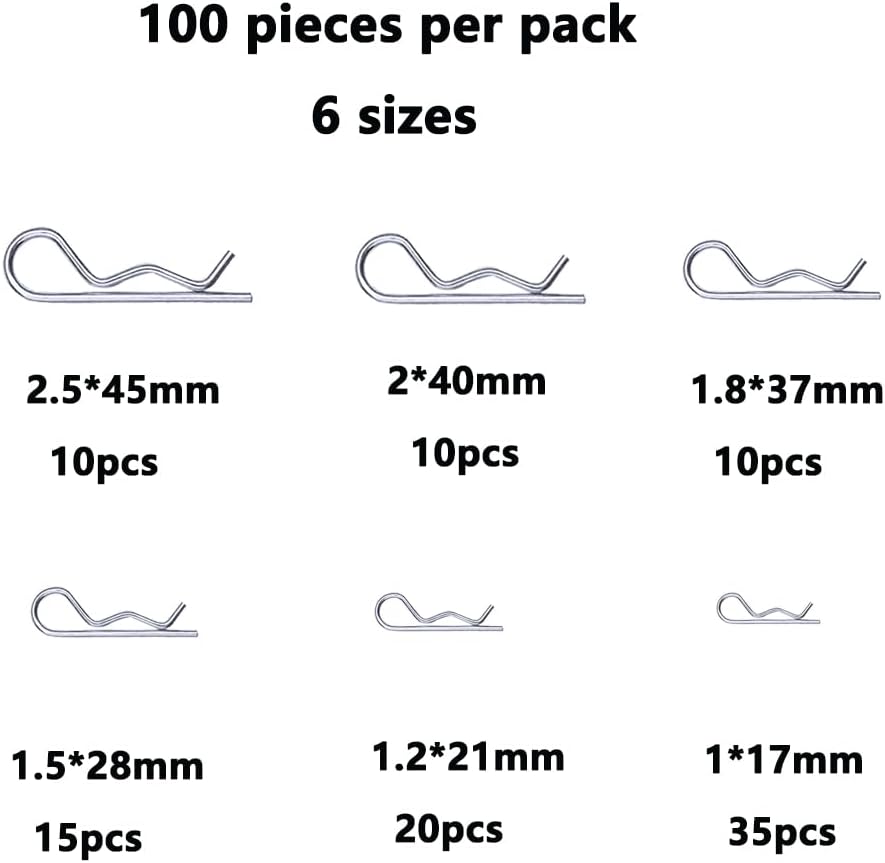 100 قطعة R دبوس كوتر دبوس كومبو مجموعة الثقيلة وصلة وصلة دبوس كليب R موجة دبوس الربيع الاحتفاظ سلك دبوس الشعر لجرار مقطورة دبوس كليب اليد شاحنة دبوس استبدال