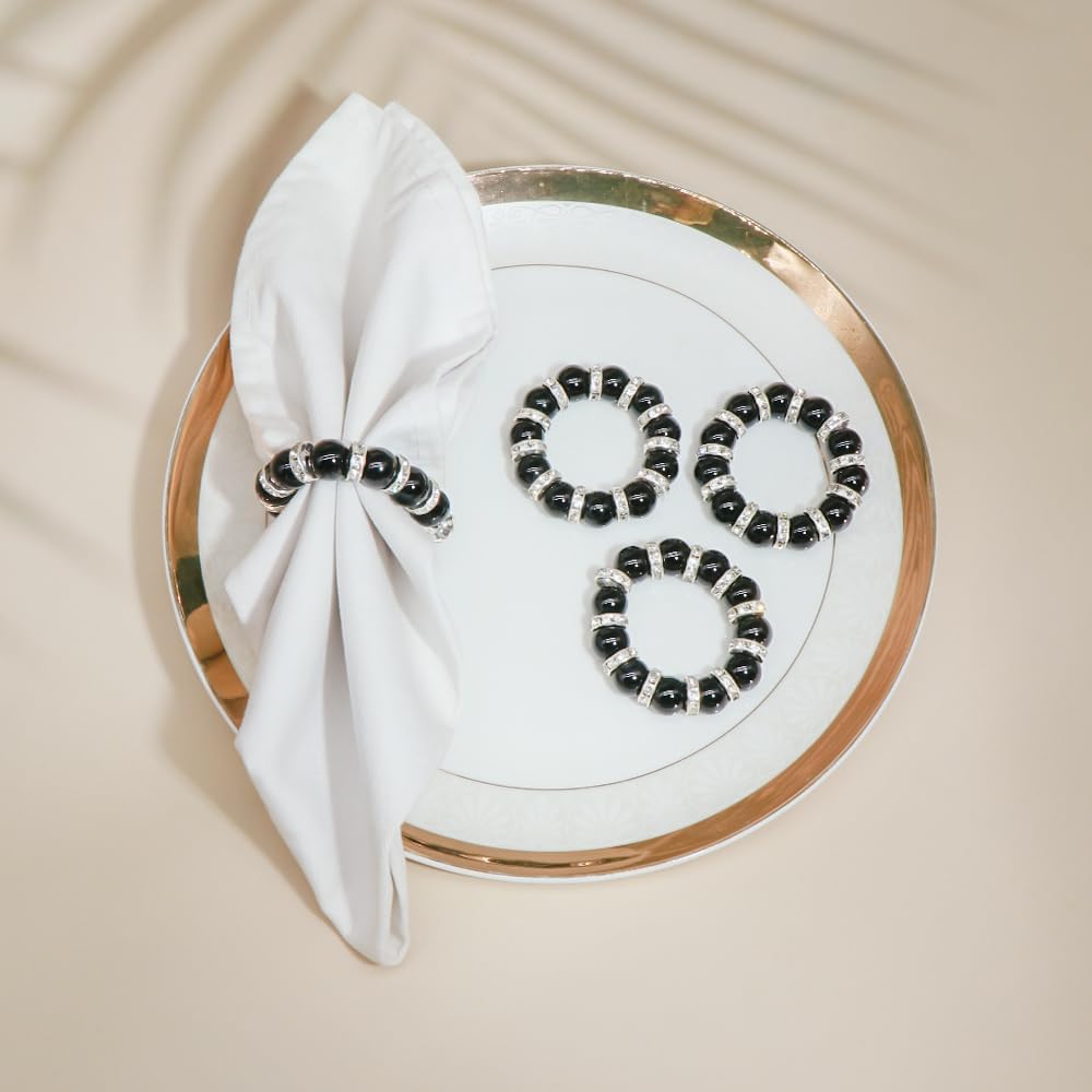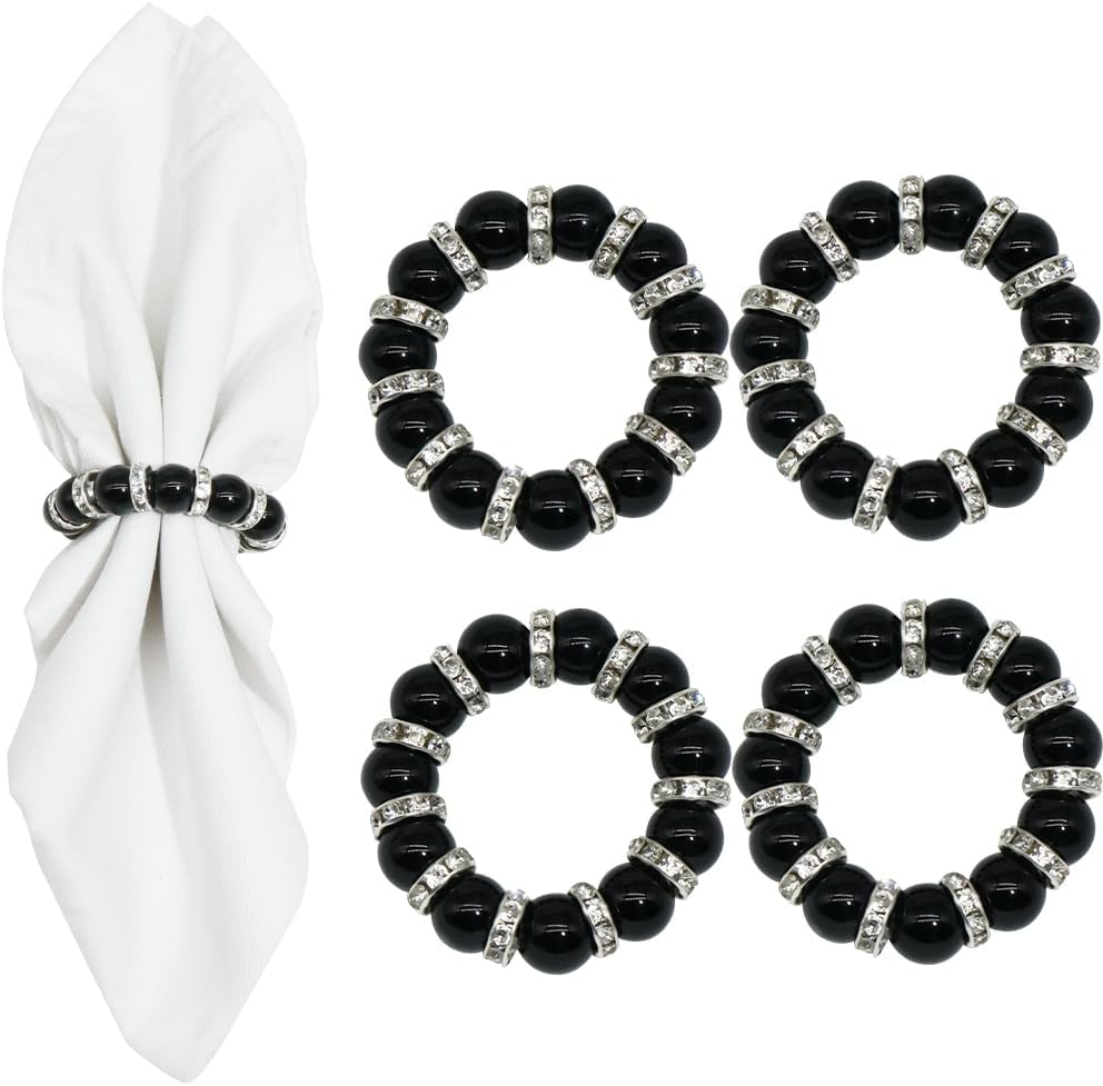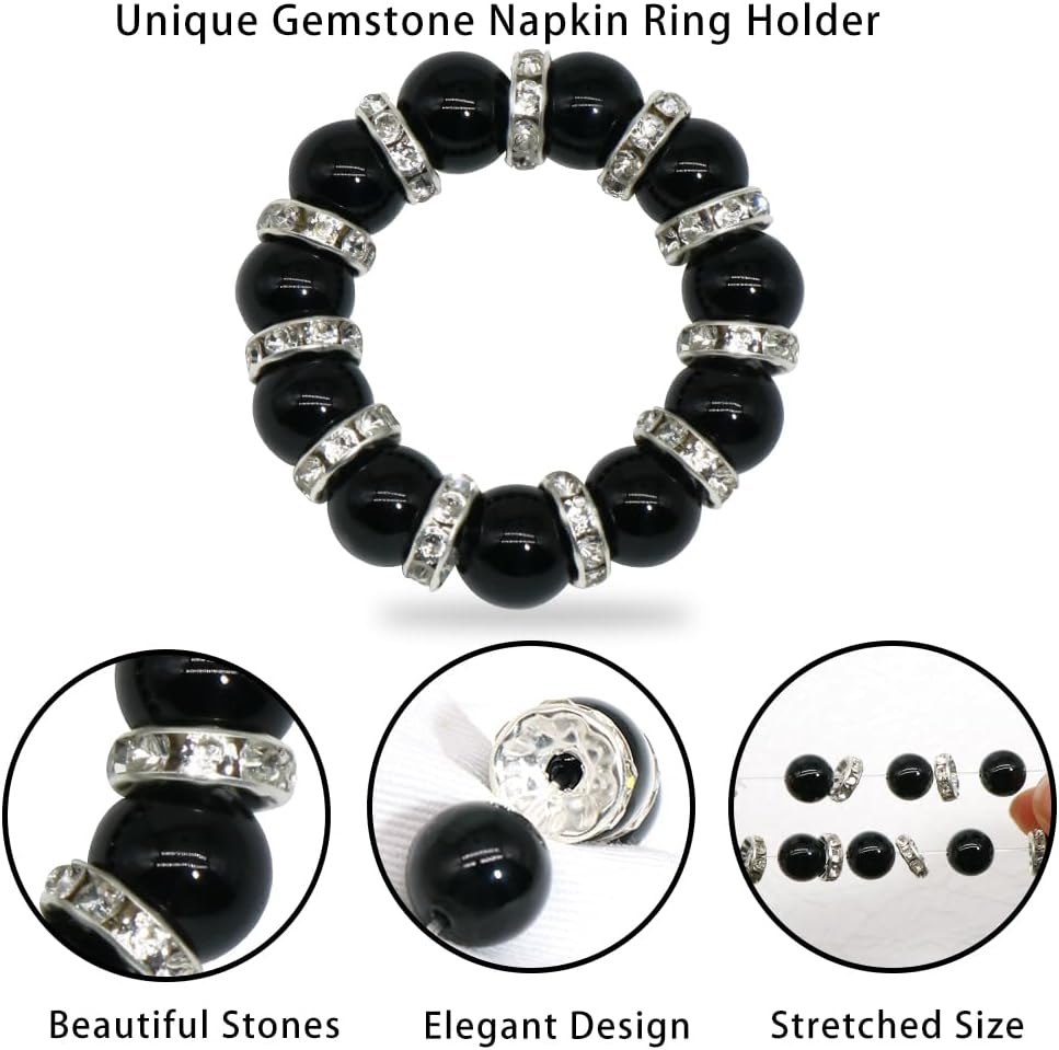 تصميم فريد: يضيف تصميم الخرز الأحجار الكريمة لحلقات المناديل هذه لمسة من الرومانسية والأناقة إلى إعداد طاولتك، مما يجذب عائلتك وضيوفك. يتألق الخرز بشكل جميل في الضوء، مما يعزز الجو العام ويكسبك الثناء في كل تجمع.