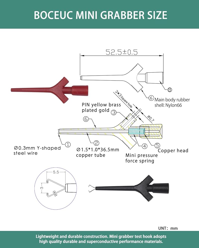 أمان عالي وتحمل لدرجة الحرارة - تحتوي مجموعة سلسلة اختبار bnc على تيار مقدر 30VAC/60VDC، 3A، وتلبي معايير السلامة. يمكن أن تعمل بأمان في نطاق درجة حرارة واسع من -15 درجة مئوية إلى +50 درجة مئوية (مشابك خطاف الاختبار: -15 درجة مئوية إلى +50 درجة مئوية) دون أي ضرر أو فشل.