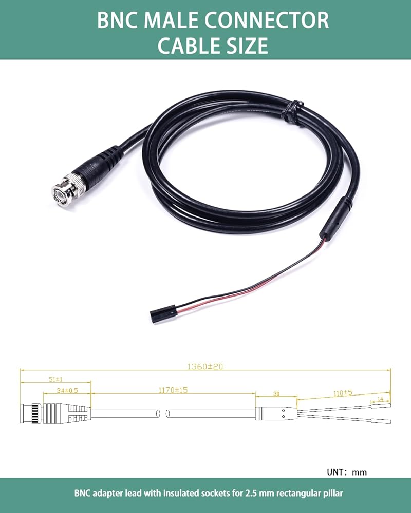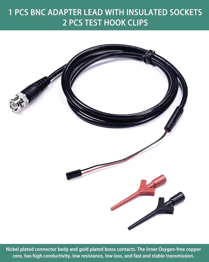 سلاسل اختبار BNC - كابل اختبار مزود بموصل BNC في أحد الطرفين وأكمام للدبابيس مقاس 0.64 مم في الطرف الآخر. مناسبة لتوصيل ذبذبات الذبذبات ومعدات الاختبار الأخرى لتثبيت الرؤوس.
