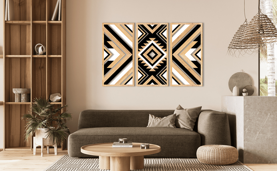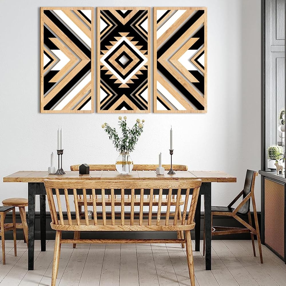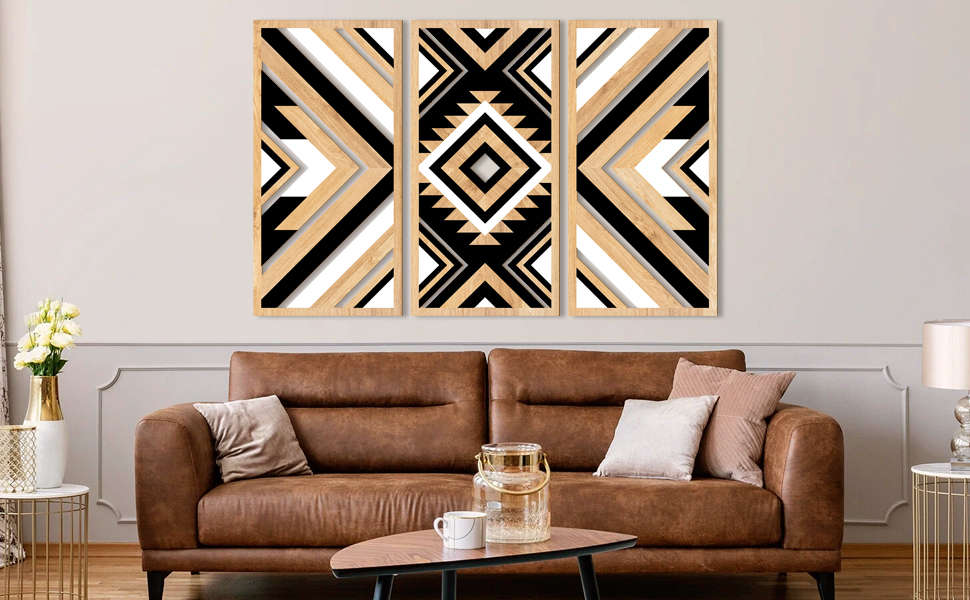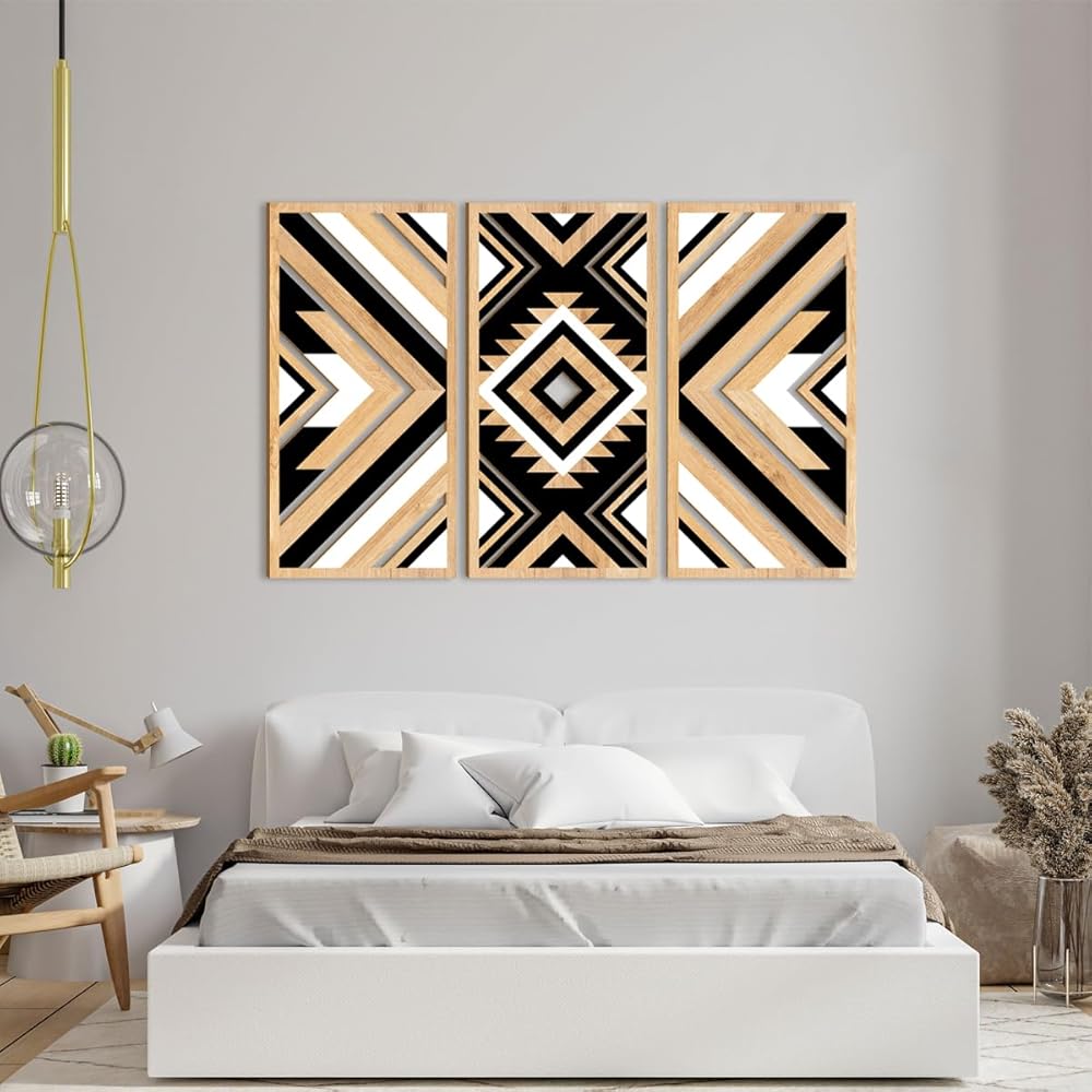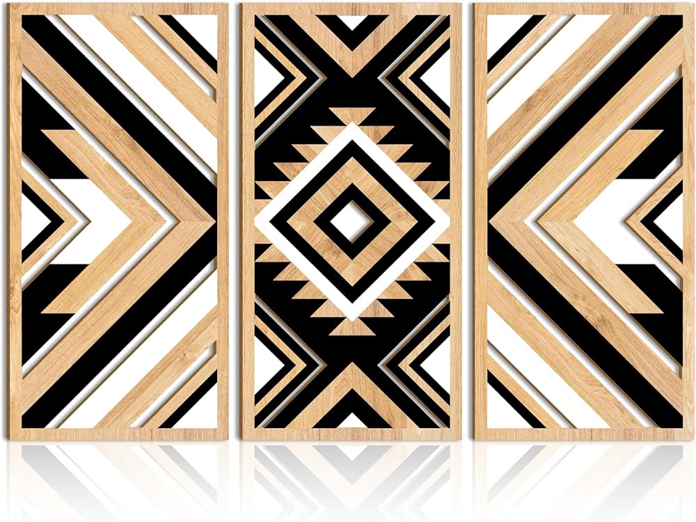 ANHUIB Aztec جدار الفن الغربي الخشب جدار ديكور كبير 3 لوحات 16x32 بوصة مزرعة سوداء بوهو منحوتات الجدار الهندسية للمنزل غرفة المعيشة غرفة نوم مكتب ديكور معلق