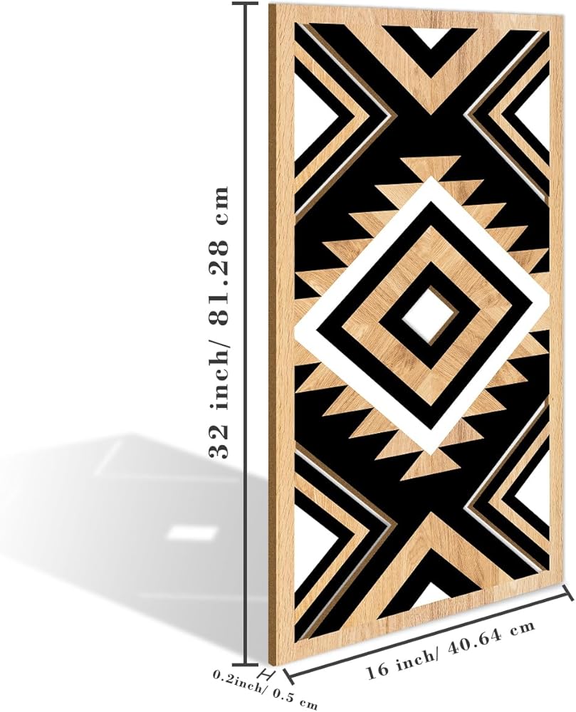 【ديكور جدار الأزتيك الجنوبي الغربي】 تم تصميم الأعمال الفنية الجدارية من خشب البوهو الغربي بأنماط هندسية باللونين الأسود والأبيض، مثل الماس والمثلثات والسهام، إلى جانب التصادم بين الألوان، مما يعكس الفن الثقافي الأزتيكي بعمق، مما يضفي إحساسًا فريدًا بالأناقة إلى منزلك.