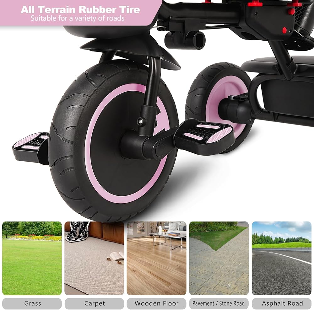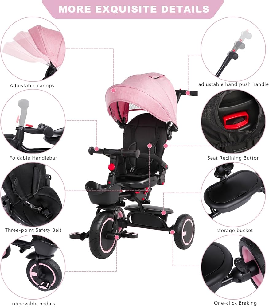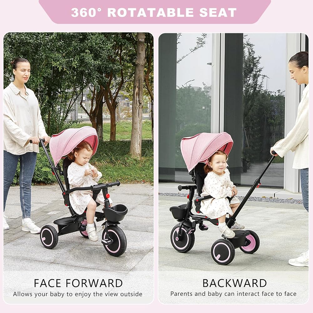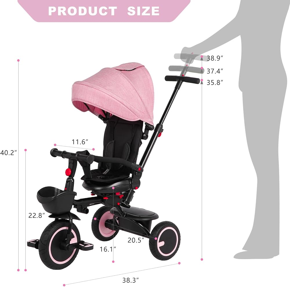 دراجة أطفال ثلاثية العجلات، دراجة أطفال قابلة للطي 6 في 1، دراجة دفع للأطفال الصغار، ألعاب للأولاد والبنات من سن 1 إلى 5 سنوات، دراجة ثلاثية للأطفال مع مقبض دفع، مظلة، مسند ظهر وحزام أمان، هدية دراجة عربة الأطفال للأطفال الصغار