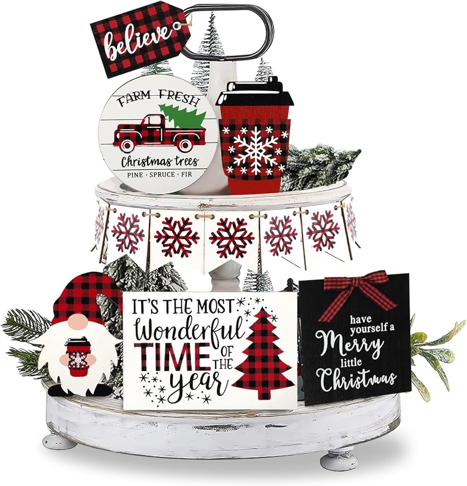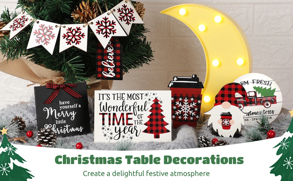 • 【متعة تزيين متعددة الأغراض】بعيدًا عن الصواني ذات الطبقات، يمكن لهذه الديكورات أن تزين طاولة الطعام الخاصة بك، ورف الموقد، والخزائن، والأرفف أو تعليقها على الجدران، والنوافذ، والأبواب، والمزيد باستخدام الخطافات والخيوط. كن مبدعًا وانشر بهجة عيد الميلاد في جميع أنحاء منزلك.