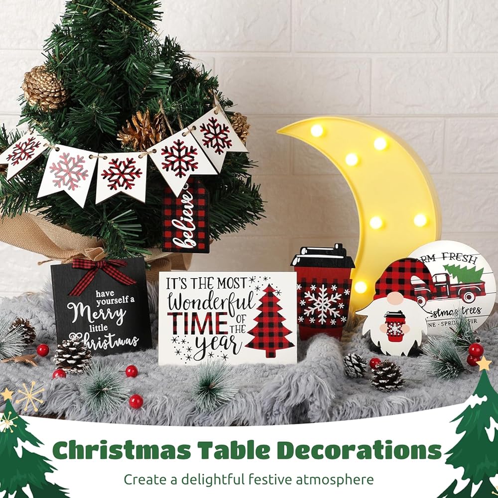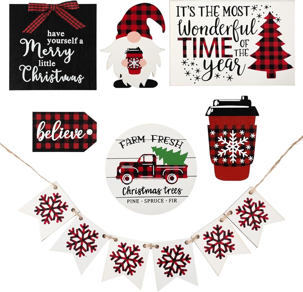 Varku 13 جهاز كمبيوتر شخصي عيد الميلاد صينية زينة مجموعة، مزرعة زينة طاولة عيد الميلاد، الجاموس منقوشة عيد الميلاد ديكور الطاولة، عيد الميلاد علامة خشبية لعيد الميلاد حزب المنزل عطلة المطبخ