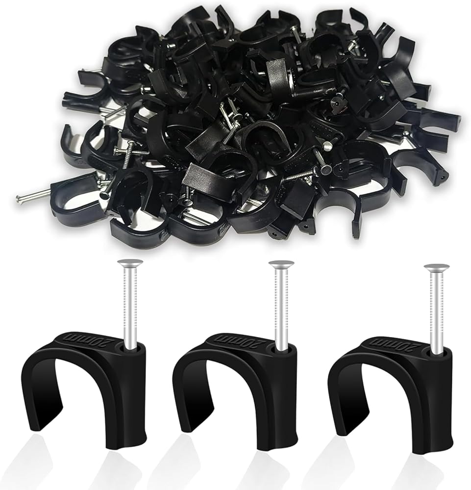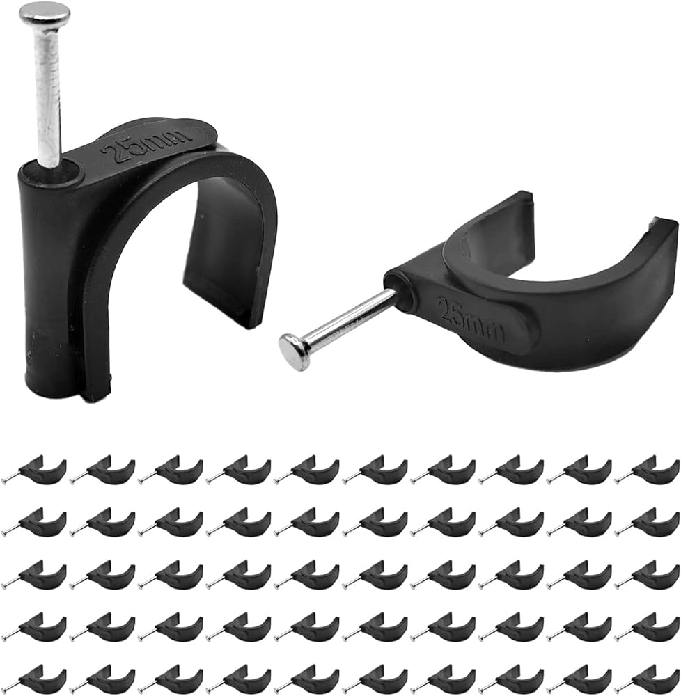 LOUZAGO 50 Pcs Pex Clamps, 1 Inch Pex Hangers Black Pex Fittings Half Clamps, J-Hook Pex Nail on Clamps for 1" OD Tubing Pipe, Pipe Support, Fixing Wire (23.5mm)