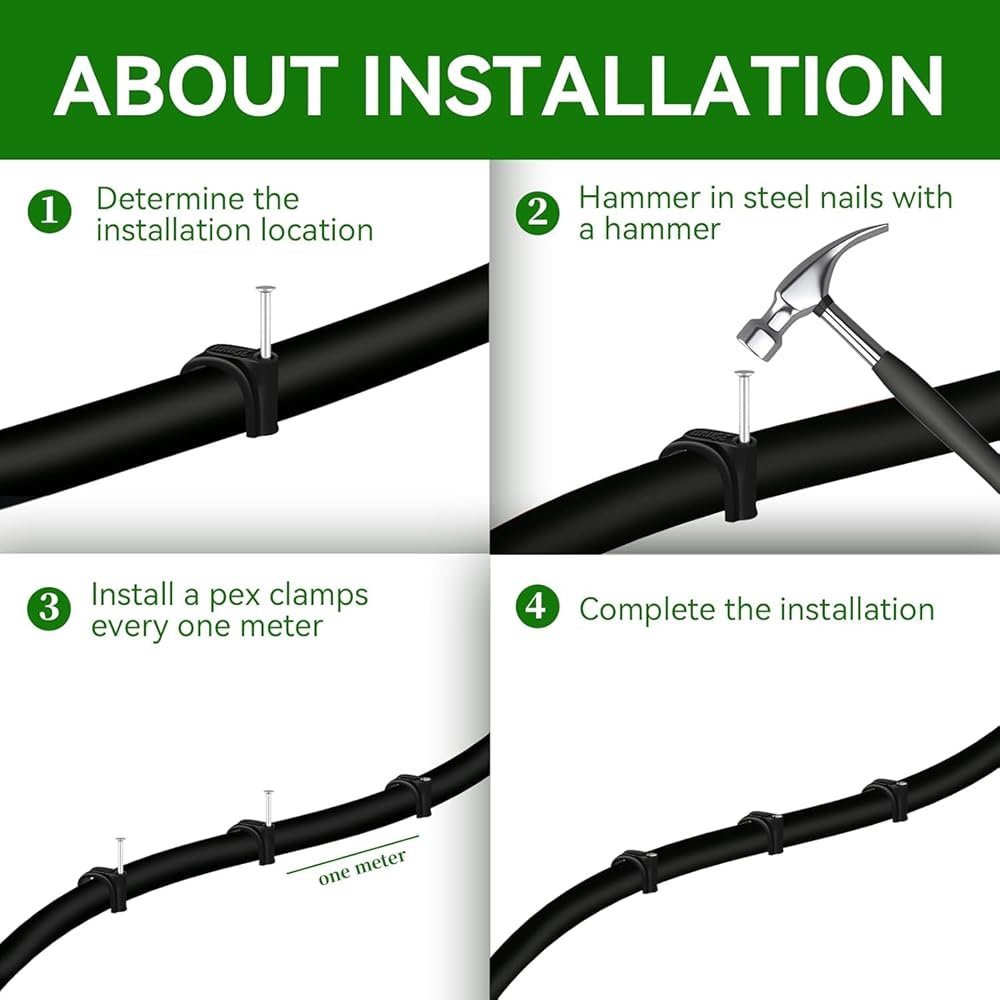 3.Install a pex clamps every one meter
