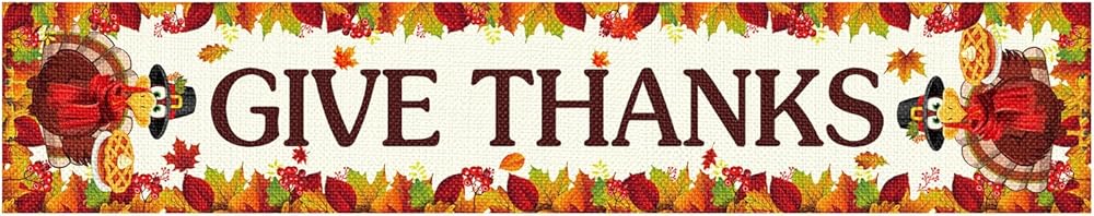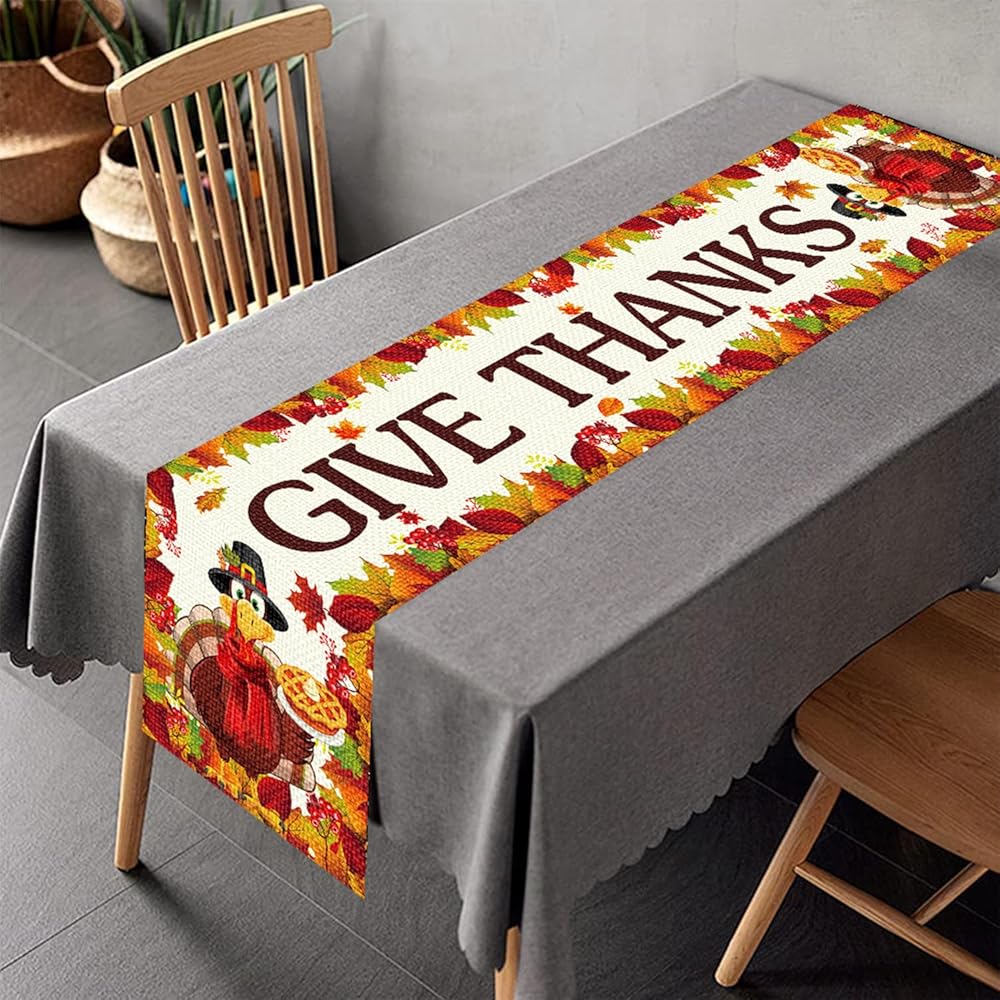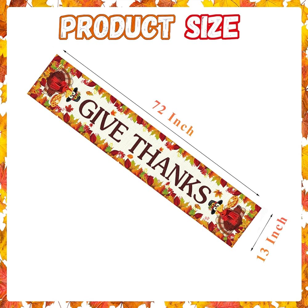 Thanksgiving Table Runner Give Thanks Turkey Thanksgiving Table Runner Rectangle for Thanksgiving Party Decorations Supplies, 72x13inch