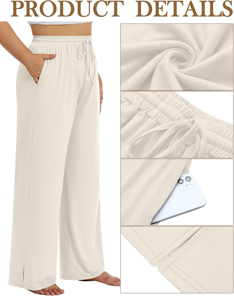 بنطال عالي الخصر بفتحة واسعة الساق: تصميم حزام الخصر برباط للسراويل الرياضية النسائية برباط يسمح لك بتعديل الضيق بسهولة، كما أن تصميم الشق الجانبي مسامي وعصري، مما يوفر تجربة ارتداء مريحة وفضفاضة
