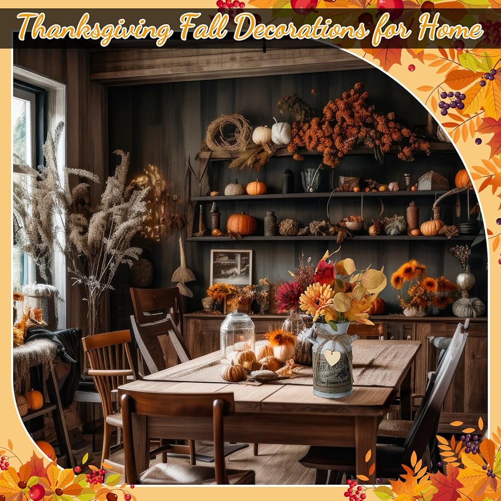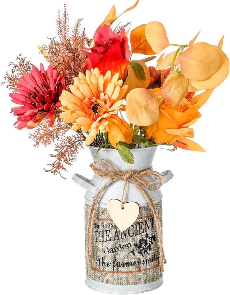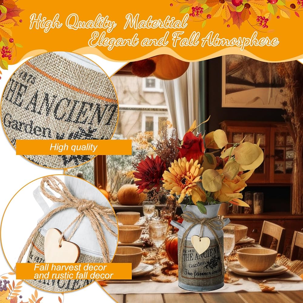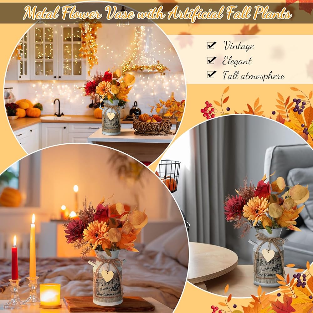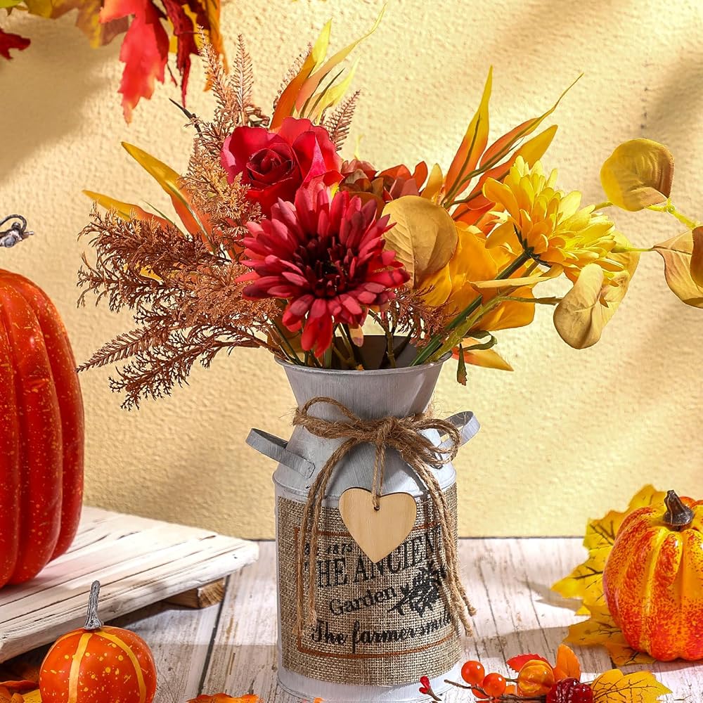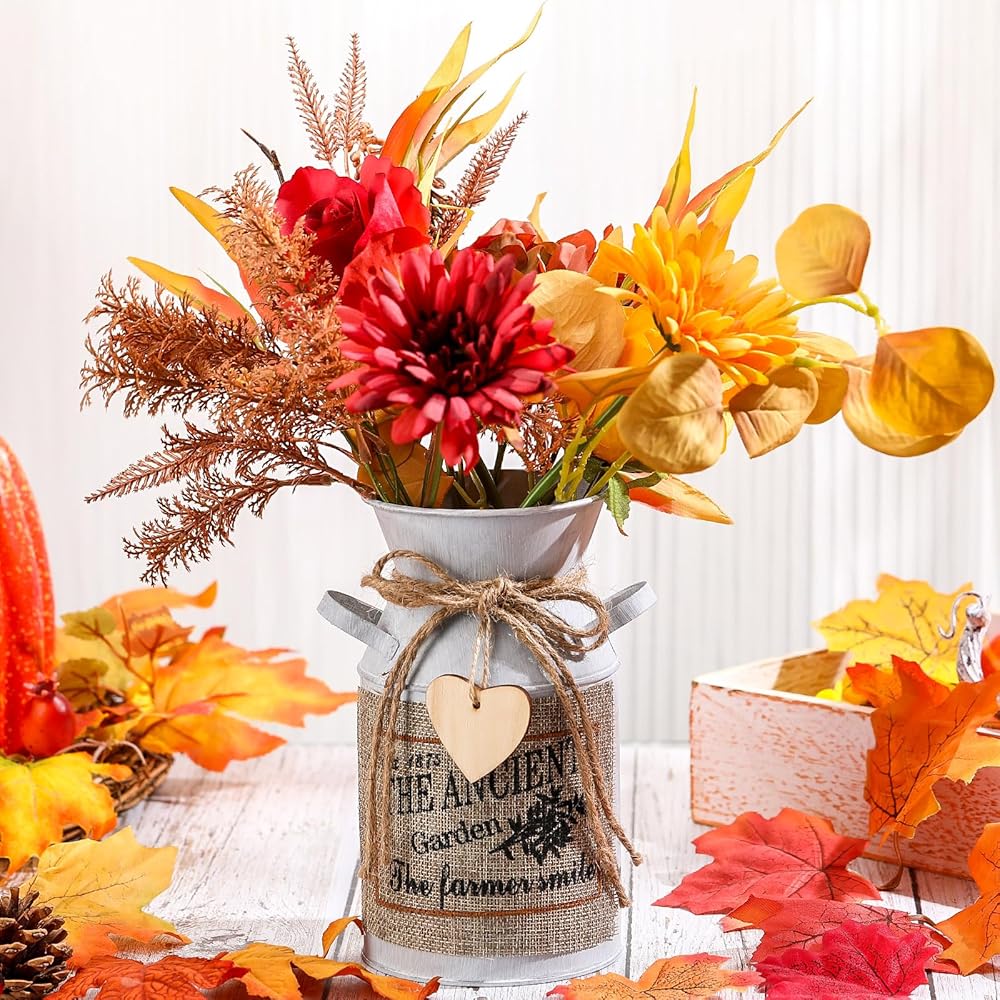 Stylish and Versatile Design: our metal flower vase not only allows you to display beautiful fall flowers but also adds a touch of rustic charm and French elegance to your decoration; The metal milk can and autumn flower come separately allowing you to design the display to suit your taste