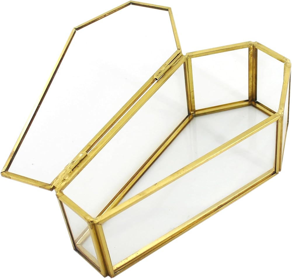 Small glass coffin jewelry box with vintage design which will succeed at bringing together style with the practical.