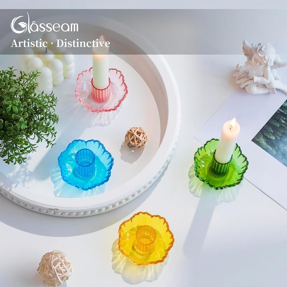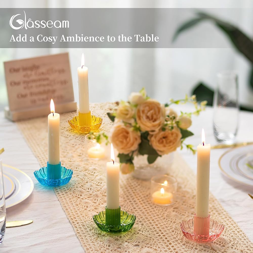 حاملات شموع زجاجية جيدة الصنع: مصنوعة يدويًا من زجاج بوروسيليكات السميك، حامل الشموع الزجاجي الأنيق هذا مزخرف وعملي. يضمن تصميم القاعدة العريضة الثبات ويمنع انسكابات الشمع المحتملة. هذا الديكور الفني لحامل عصي الشموع جميل لإضافة التألق إلى أي مناسبة وعطلة وهو مناسب للاستخدام طوال العام