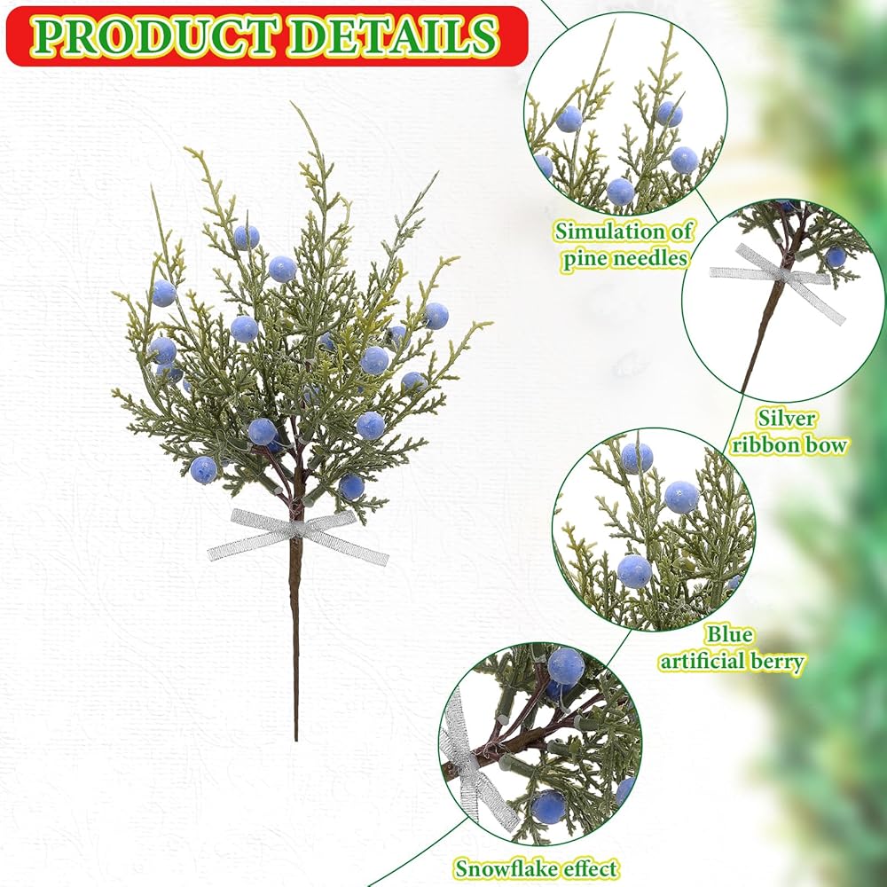 Lyrow 15 جهاز كمبيوتر شخصى من أوراق الصنوبر الاصطناعية فروع مع التوت العرعر الاصطناعي رذاذ الأرز الأخضر أغصان الصنوبر ينبع اختيار للحرف اليدوية DIY إكليل عيد الميلاد إكليل وديكورات الشتاء الداخلية والخارجية