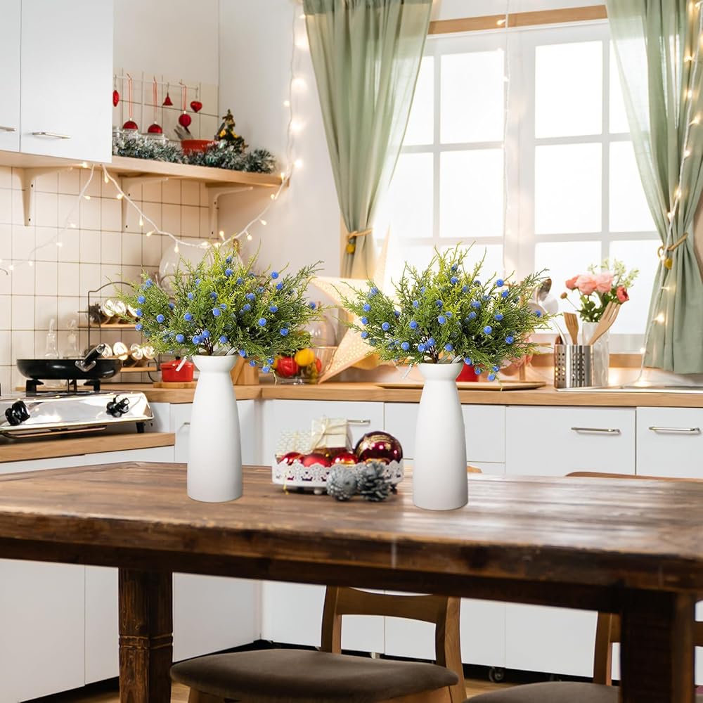 Our faux pine stems with berries are made from artificial materials, designed to mimic the texture and appearance of natural pine branches and berries. Enjoy the beauty of nature in your home, without the fuss of maintaining real plants. The durable material ensures your decorative piece can last for years to come