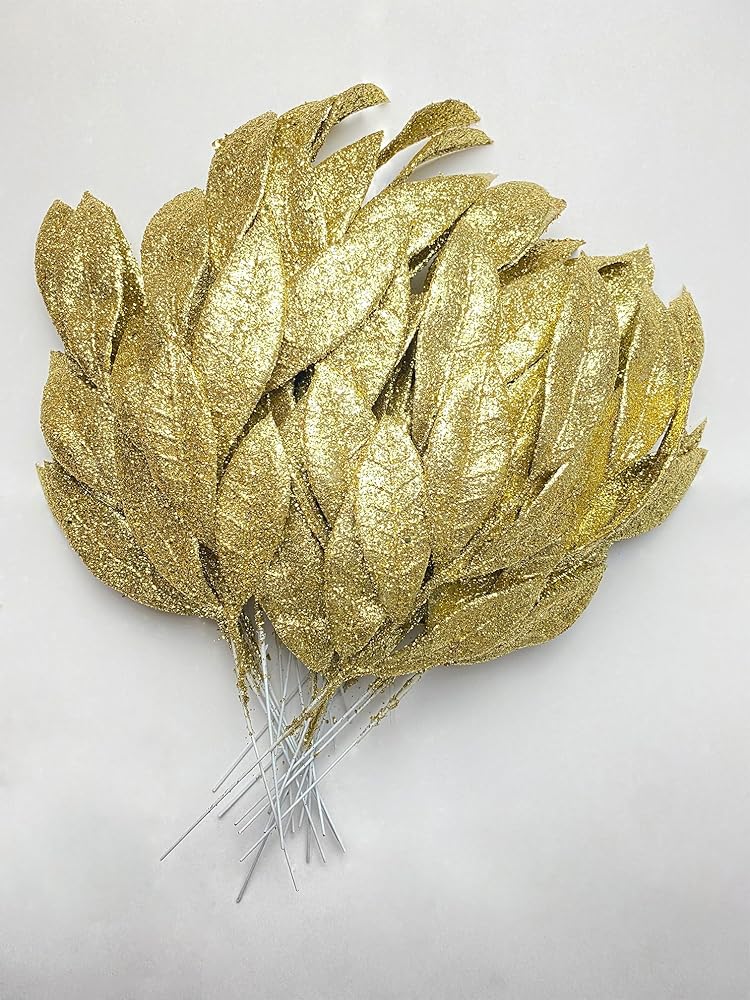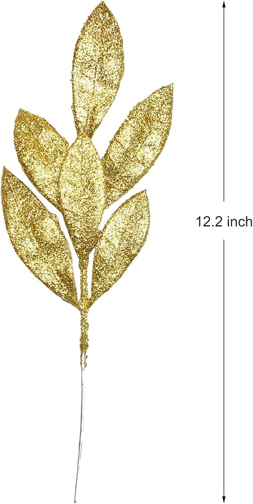 25Pcs gold glittered artificial leaf spray, enough quantity is enough to meet your decoration needs