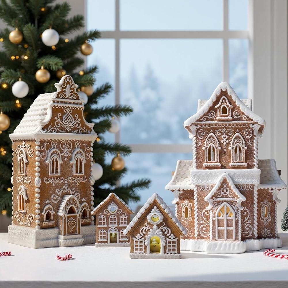 - بيت خبز الزنجبيل الساحر: اخلق جوًا مبهجًا واحتفاليًا مع بيت خبز الزنجبيل المصمم بشكل معقد.