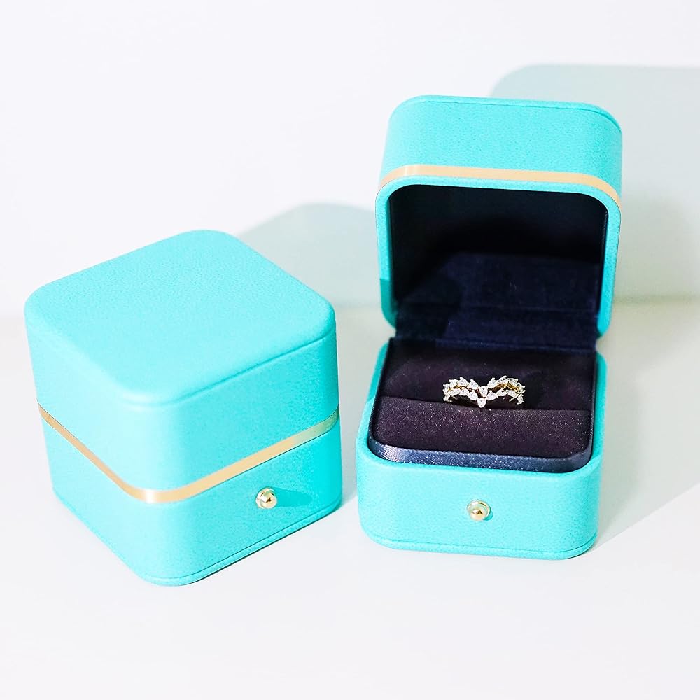 【تصميم رائع】صندوق الخاتم الأزرق مصنوع يدويًا، مما يظهر مزاجًا أنيقًا. صندوق الخاتم الرائع هو ما يجب أن تمتلكه جميع السيدات الأنيقات.