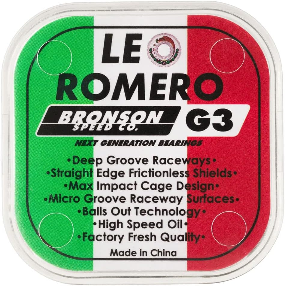 Leo Romero Pro Model Set of 8 Bearings Deep Groove Raceways: Balls roll deep in raceway channels, reduces side impact damage and breakage. Straight Edge, Removable Frictionless Shields: Pop off resistant, hold oil in, dirt and moisture out, and easy to clean. Micro Groove Raceway Surfaces: Linear micro-groove surfaces improve bearing lubrication, speed, and spin. Max Impact Cage Design: Non-distortion custom cage keeps the balls precision spaced. Micro grooves aid in oil circulation. Balls Out Technology: Eliminates shield and cage contact on impact for a go fast, stay fast bearing. High Speed Oil: Custom engineered light oil lubricant is water, oxidation, and corrosion resistant for extended wear protection. Factory Fresh Quality: Nitrogen-filled shrink wrap, reduces metal & oil oxidation until ready to be ridden.