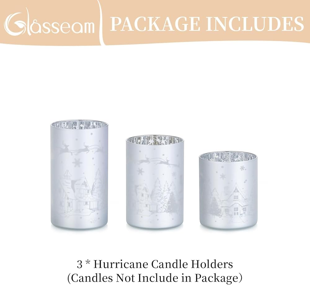 حامل شموع إعصار عيد الميلاد من glasseam: 3 قطع من حاملات الشموع الزجاجية للطاولة المركزية وحاملات الشموع الفضية للشموع العمودية حامل الشموع العائمة المزخرفة لهدايا عيد الميلاد المركزية