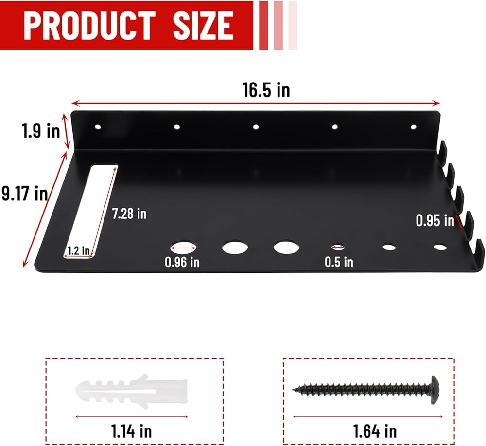 【حامل تثبيت على الحائط متعدد الاستخدامات】لا يستطيع منظم الأدوات تخزين المناشير والزجاجات السائلة والسلاسل الاحتياطية فحسب، بل يمكنه أيضًا تخزين الأدوات مثل الكماشات والمفاتيح.