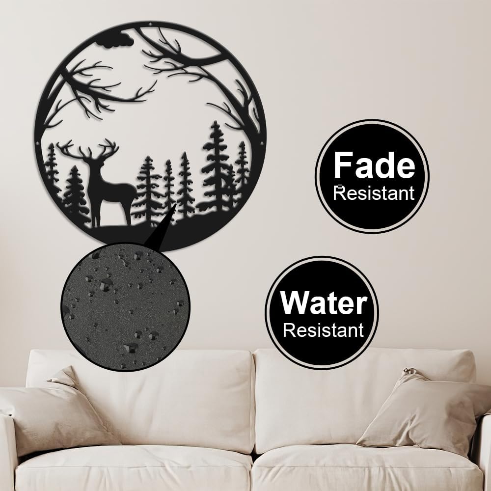 【About】:This wall decor uses about 1mm thickness hardened steel that won't deform easily, and the delivery is cardboard wrapped all around so metal house decor won't be deformed by knocks on the way. Metal wall art is laser cut and will not have stray edges. The surface has a precise sandblasted paint treatment, Metal wall decor will not rust even after years of use.