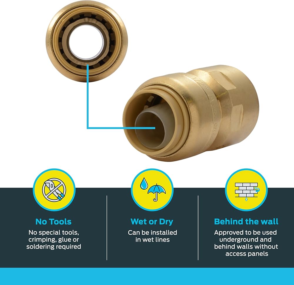 EASY TO INSTALL: The innovative push-to-connect design of the SharkBite push female adapters allows for quick and easy installation, with no tools, crimping, glue, or soldering required; can be installed in wet lines