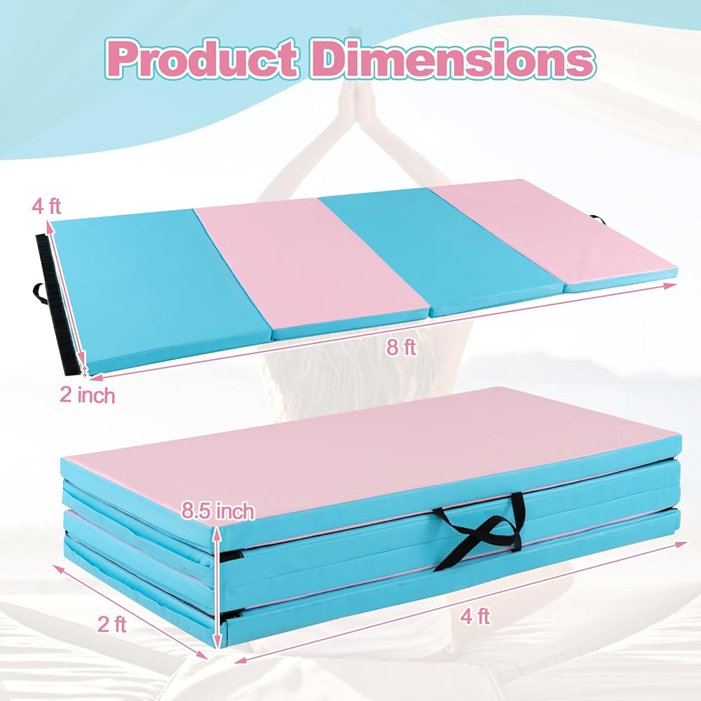 • 【Foldable & Portable Design】 Designed with a 4-fold construction, this tumbling mat is easily foldable and saves storage space. [Folded Dimensions: 4' x 2' x 8"(L x W x H)] Moreover, the 2 carrying handles help with transport. Net weight: 12 lbs.