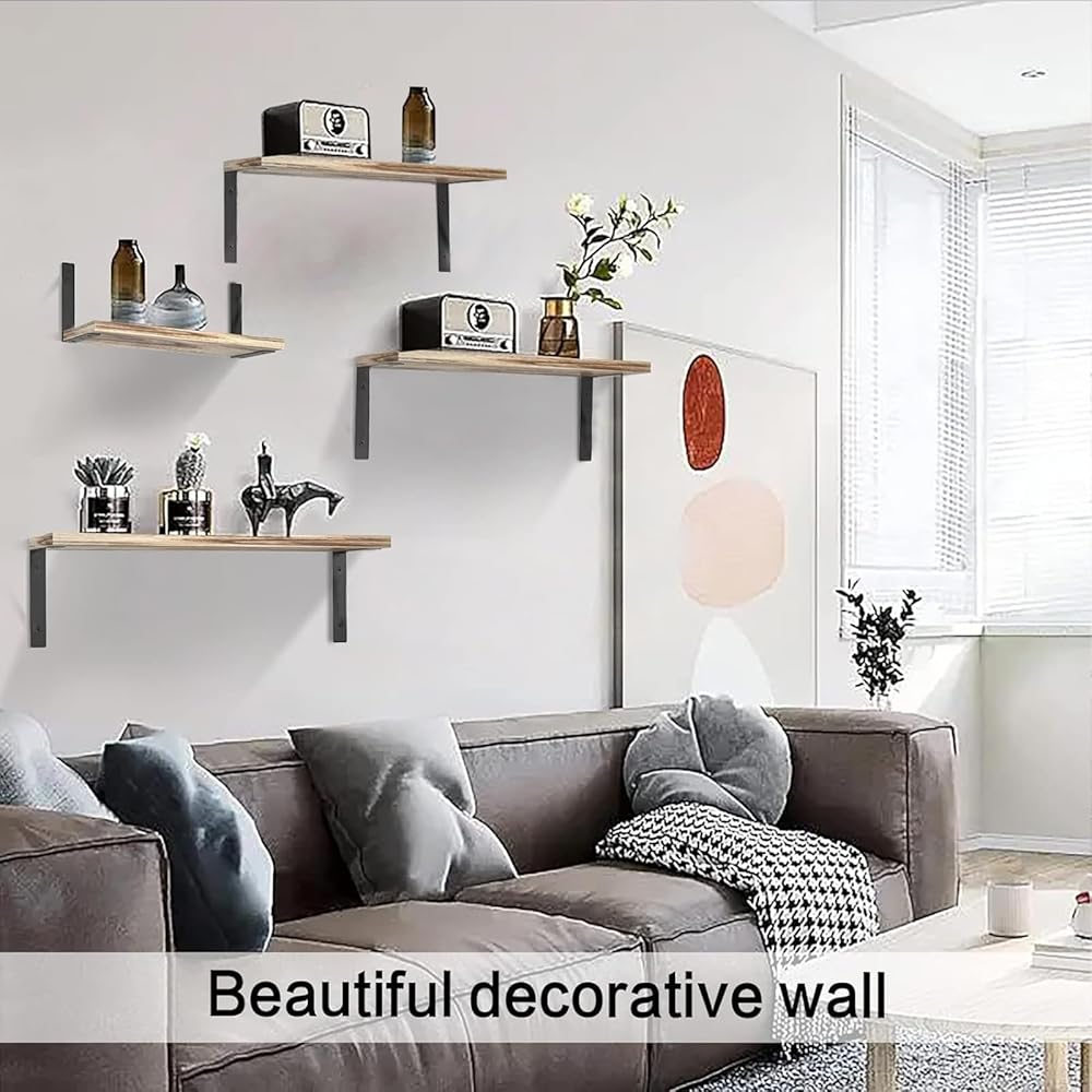 hy Choose's Wall Mounted Floating Shelves? Sturdy Structure The metal brackets with thick anti-rust paint has a strong bearing ability and the surface has a matte texture. Unique Design The brackets beautifully accent the grain texture of the wood. And aside from exhibiting metalworking craftsmanship, they offer two display forms. Upgraded Widened Wood The width of 6.1 inches is enough for you to place the items you want to place. Easy Installation The installation manual allows you to easily install it in a few minutes.