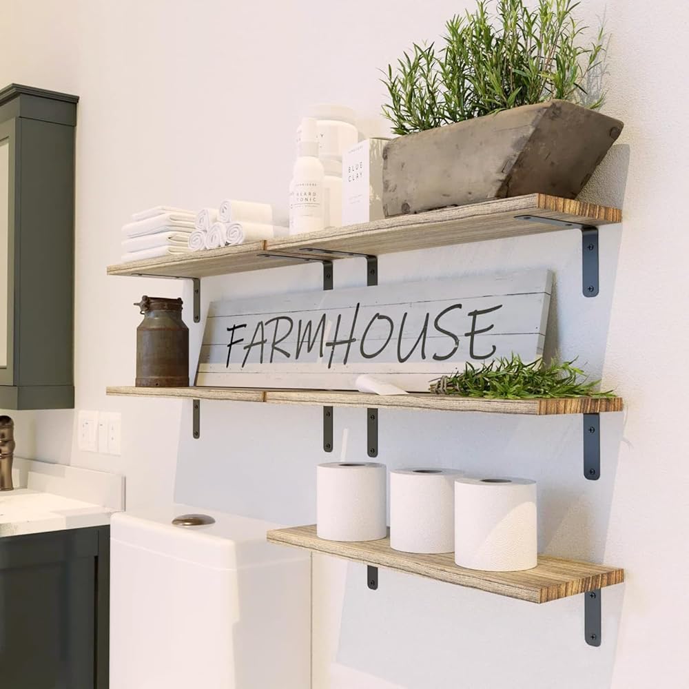 Natural Wood & Wall Mounted Design:Our 6 sets bathroom floating shelves for wall are made of wood which grows naturally, so each piece of the board has unique natural wood grain and color. Through the simplest charcoal roasting process, we restore the carbonized color and texture of the wood itself. Our bathroom floating shelves for wall make full use of wall, and let your bedroom and bathroom look so cute.