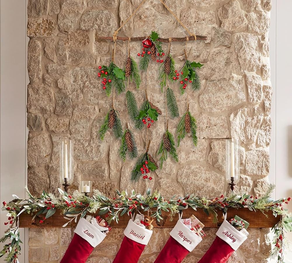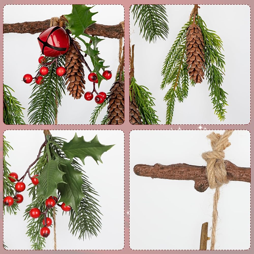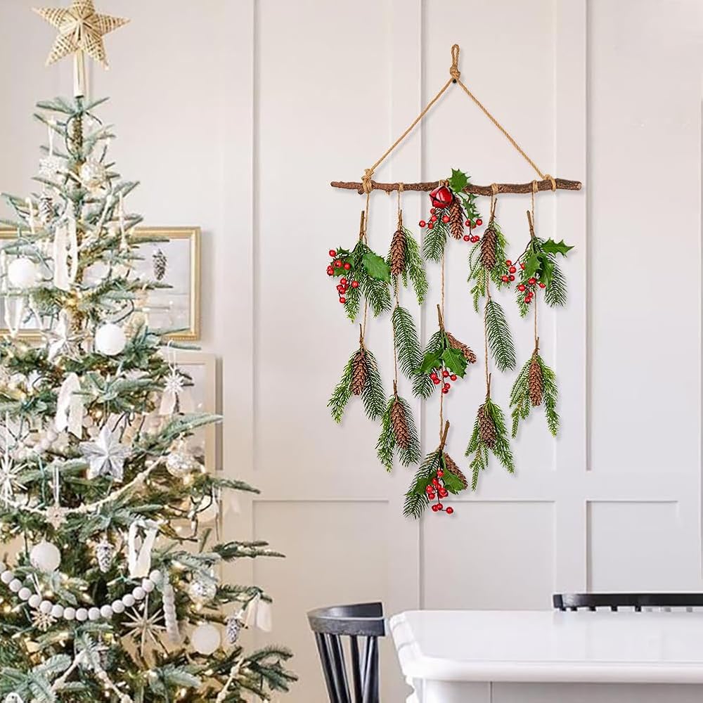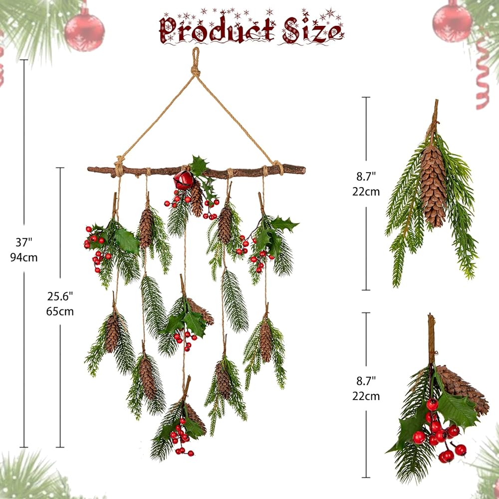 Hollyone زينة عيد الميلاد، عيد الميلاد إبر الصنوبر الخضراء معلقة ديكور الحائط مع مخاريط الصنوبر الأحمر الاصطناعي نبات معلق للباب الأمامي المنزل رف داخلي في الهواء الطلق
