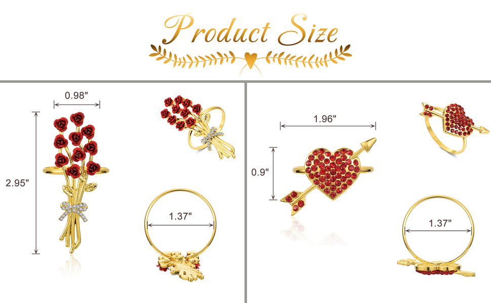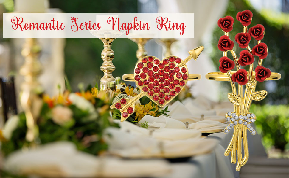 • حلقات مناديل القلب: يمكن أن تتوافق حلقات المناديل هذه بشكل مثالي مع مجموعة متنوعة من إعدادات الطاولة وإكسسواراتها. لا يجعلك تستمتع بوقت العشاء فحسب، بل يترك أيضًا انطباعًا عميقًا لدى ضيوفك.