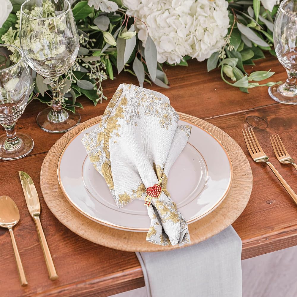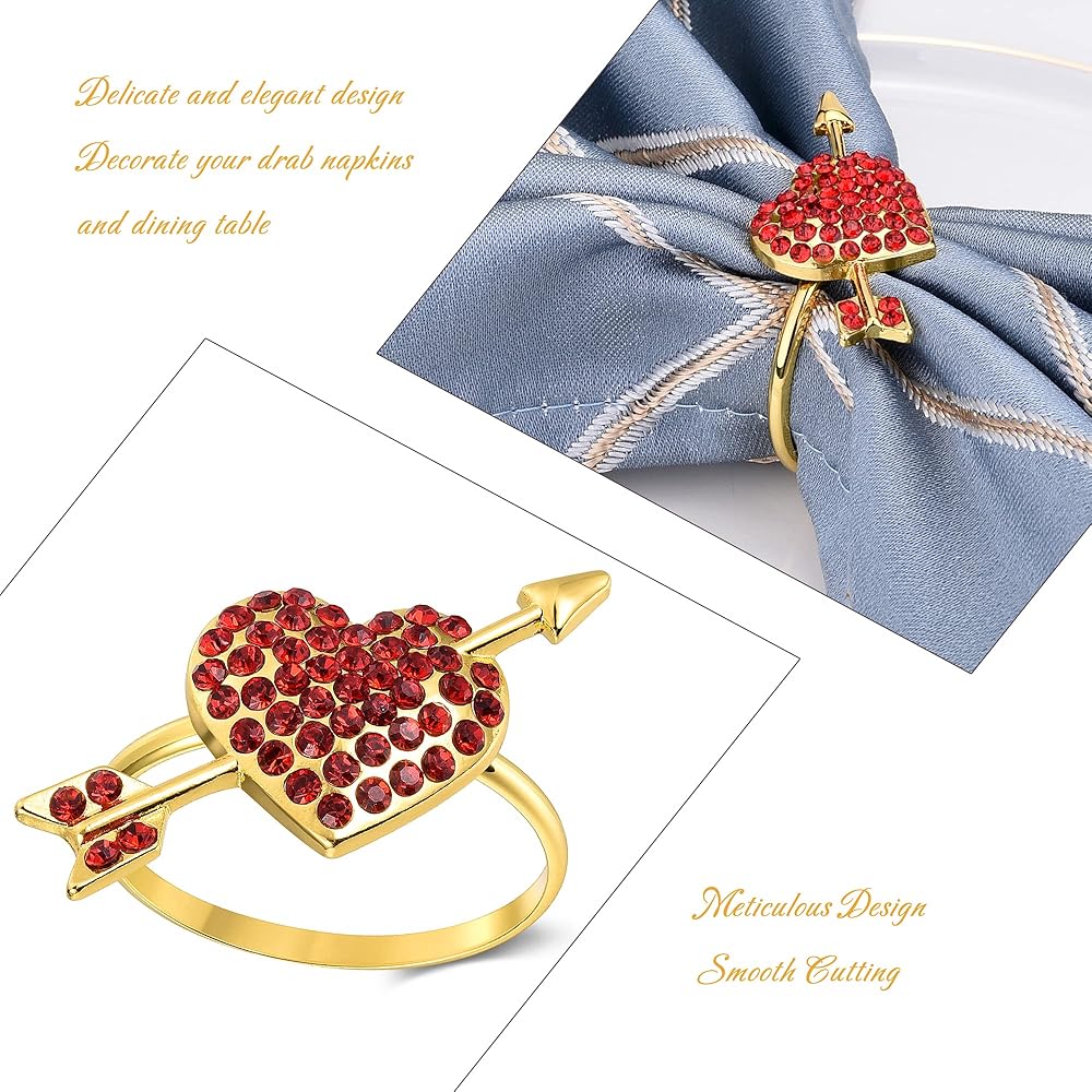 • تصميم جميل: حلقات مناديل القلب مصنوعة من سبيكة مطلية بالكهرباء وحجر الراين واللؤلؤ. صنعة قوية ورائعة. مثالي لعيد الحب، وحفلات الزفاف، والذكرى السنوية، وعيد الشكر، والعشاء، وديكورات حفلات الكريسماس.